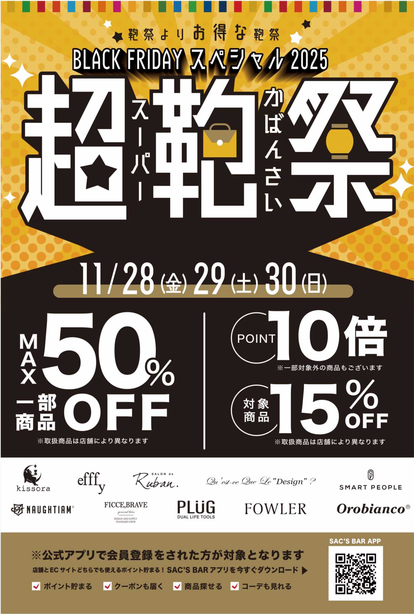 【あべのキューズモール店限定】11月30日(日) アプリ会員限定 5%オフ!!