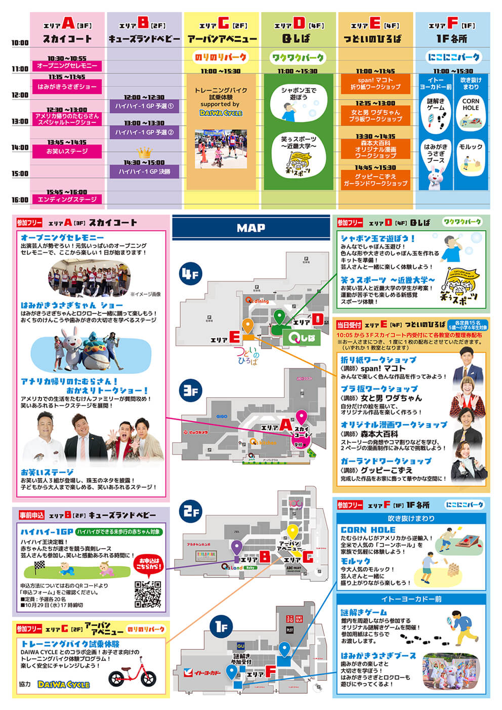 10:05から3F スカイコート内受付にて各教室の整理券配布