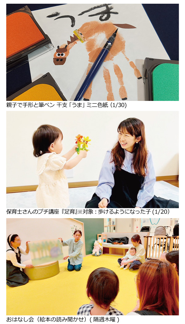 赤ちゃんや小さいお子さんと保護者の方が気軽に一緒に遊んだり、情報交換をしたり、交流を行うことができるスペースです。