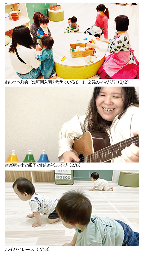 赤ちゃんや小さいお子さんと保護者の方が気軽に一緒に遊んだり、情報交換をしたり、交流を行うことができるスペースです。