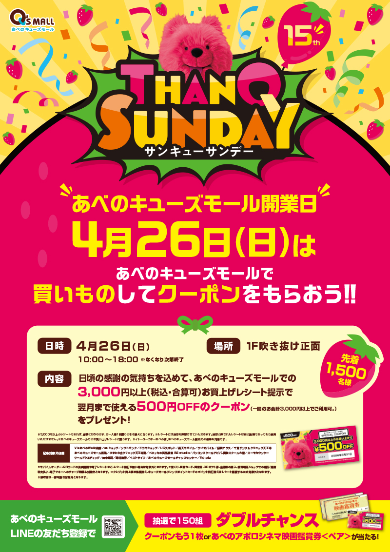 2026年4月26日(日)は、開業15周年を記念して、サンキューサンデー特別ver.を開催!!