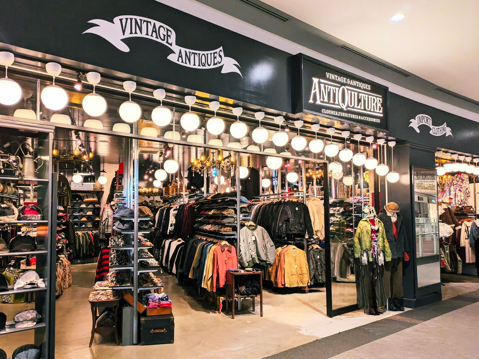 30’s~90’sと幅広い年代のメンズ、レディース古着をセレクトしており、さらにオリジナル・インポートウェア、アクセサリー、バッグ、シューズも充実。