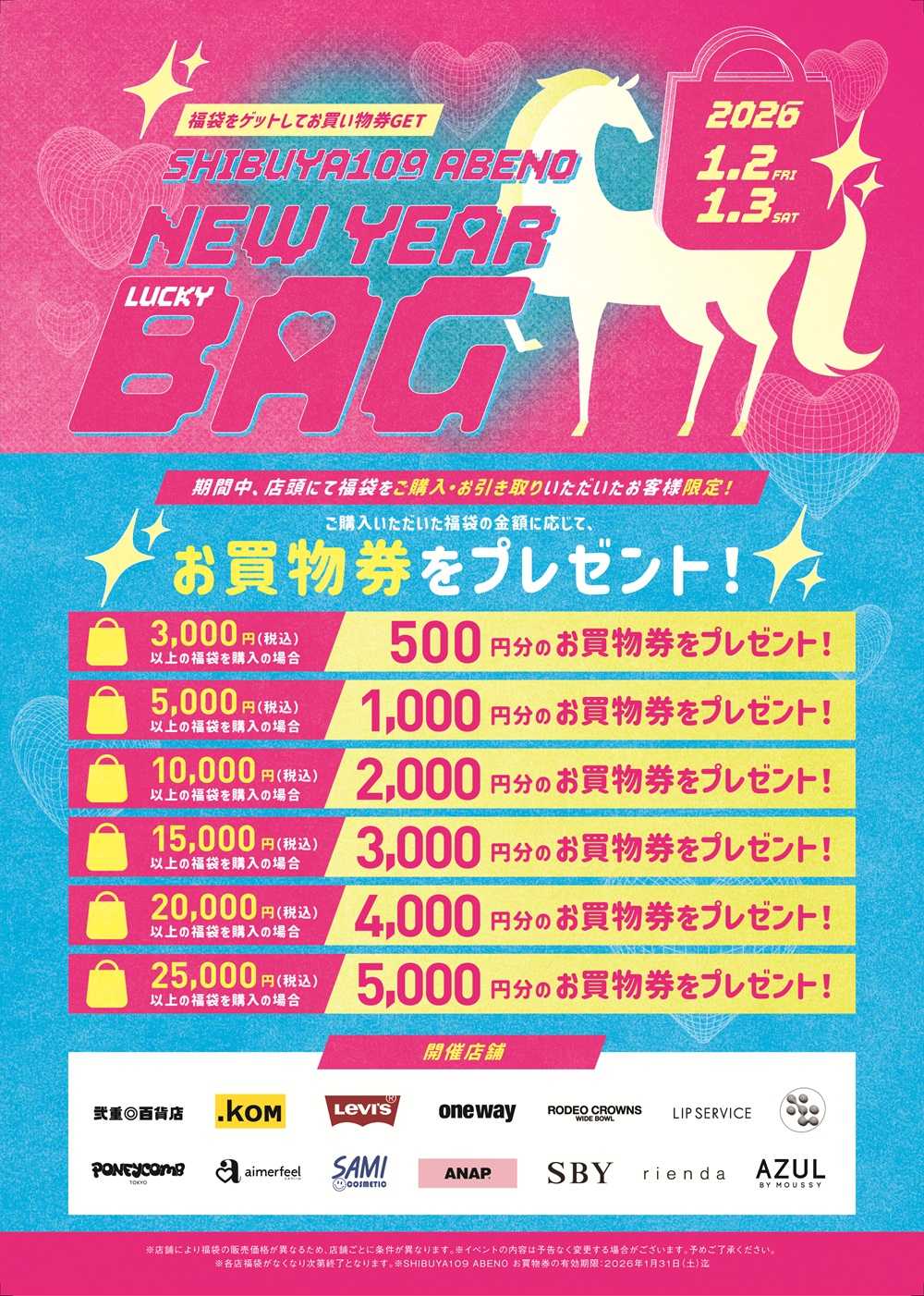 期間中、SHIBUYA109 ABENO 店舗にて福袋をご購入・お引き取りいただいたお客様限定!