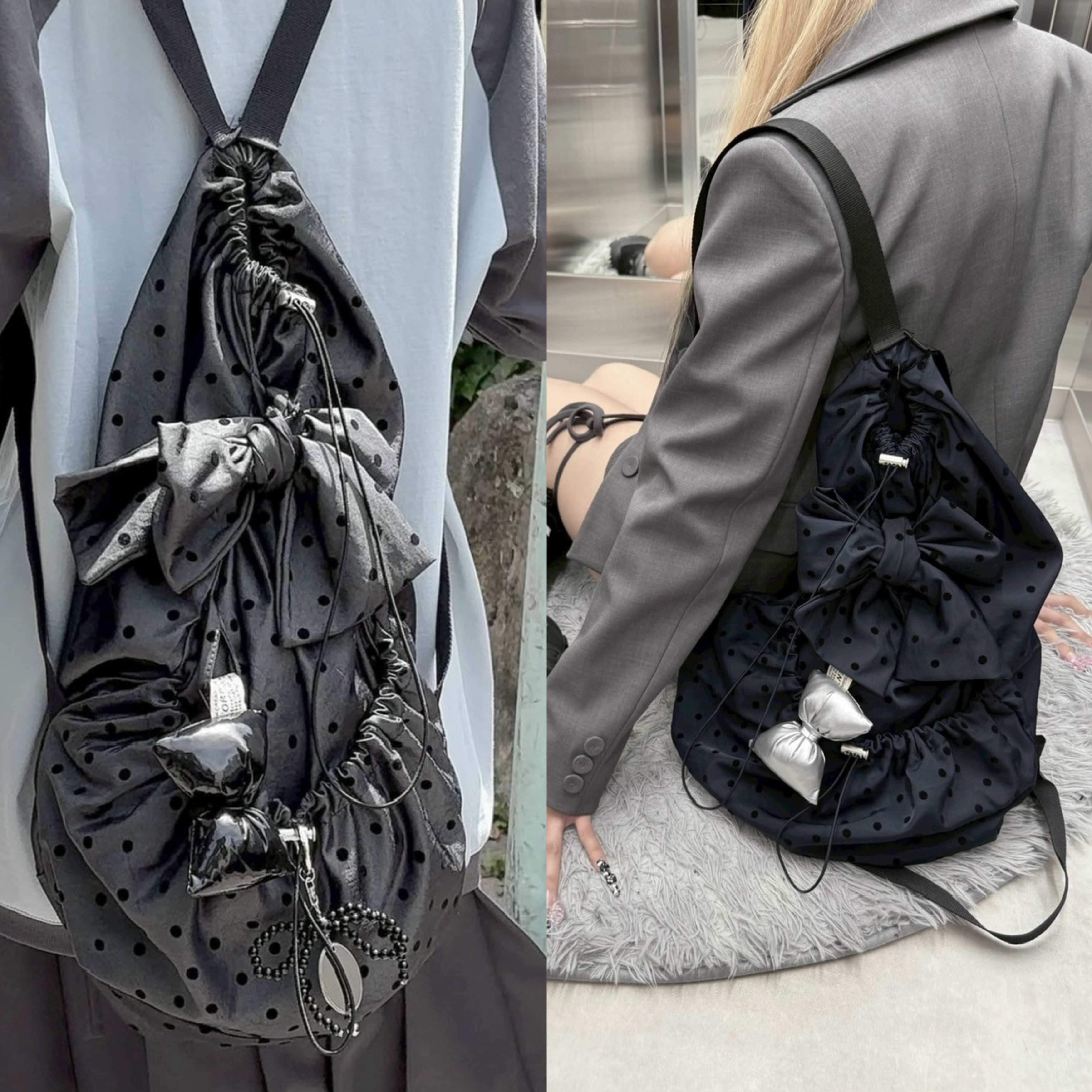 バッグの中だとかなり上位に入る位の人気商品です。ぷっくりとしたリボンの飾りと小ぶりな水玉に心を鷲掴みにされちゃいます…。