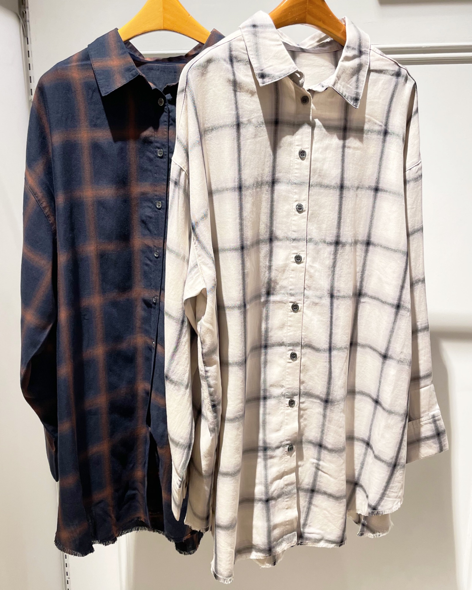 NEW 更新日:2025.10.03 anRipply 06-6646-1201 オンブレチェックオーバーシャツ グラデーションがかかったような、落ち着いたオンブレチェック柄がポイントのシャツ◎ 裾は切りっぱなしのラフな表情がポイントです! 羽織りとしてもお使い頂けるので、着回し力の高いアイテムです☆ オンラインストア インスタグラム 関連キーワード #記念日 #プレゼント #新商品 #コーデ #お出かけ X この店舗のショップニュース スエードポンチジップブルゾン※セットアップ対応 スエードポンチフライトジャケット※セットアップ対応 シャツレイヤードプルオーバー MIXミニループヤーンニットスカート※セットアップ対応 MIXミニループヤーンニットベスト※セットアップ対応 ラガーシャツ ベルトスリーブプルオーバー スエードポンチIライントラックスカート フェイクファー2wayショルダーバッグ ボリュームスリーブプルオーバー