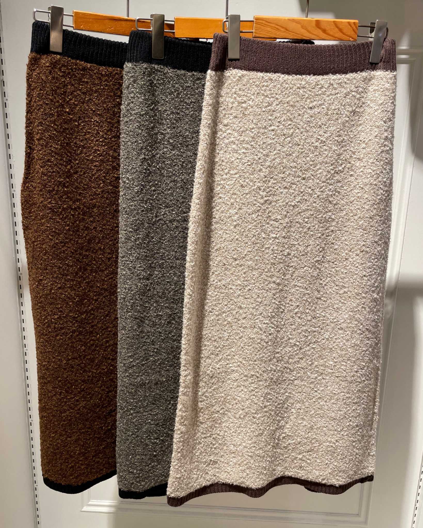 ざっくり感とぽこぽことした凹凸織りの表面感があるミニループヤーンニット素材の柔らかな編地は、ソフトな風合いで伸縮性があり窮屈感なくストレスフリーで着用できます。