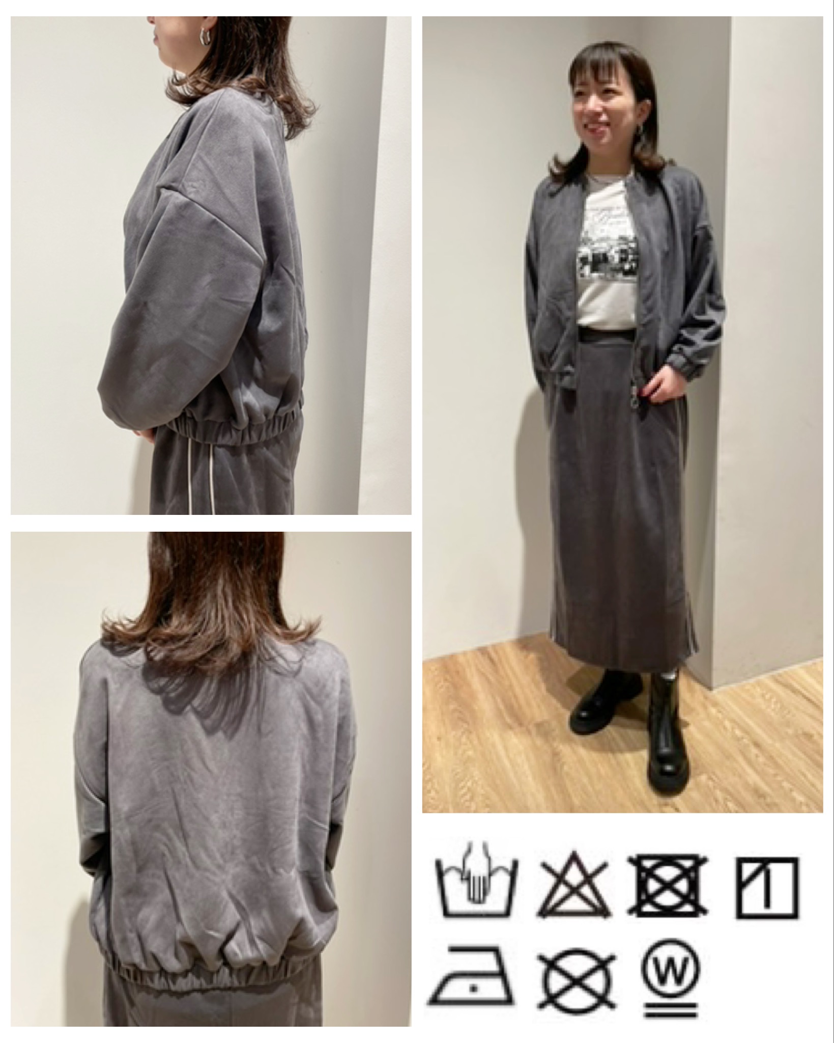 同素材のスカートと組み合わせた、セットアップコーデにも対応◎