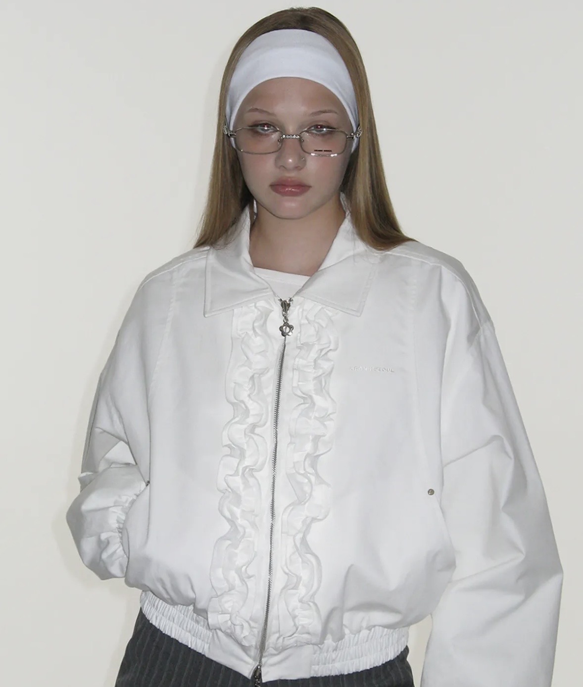 立体的なフリルと丸みのあるシルエットが可愛い、主役級ブルゾン。刃織るだけでガーリーメモードな雰囲気に!