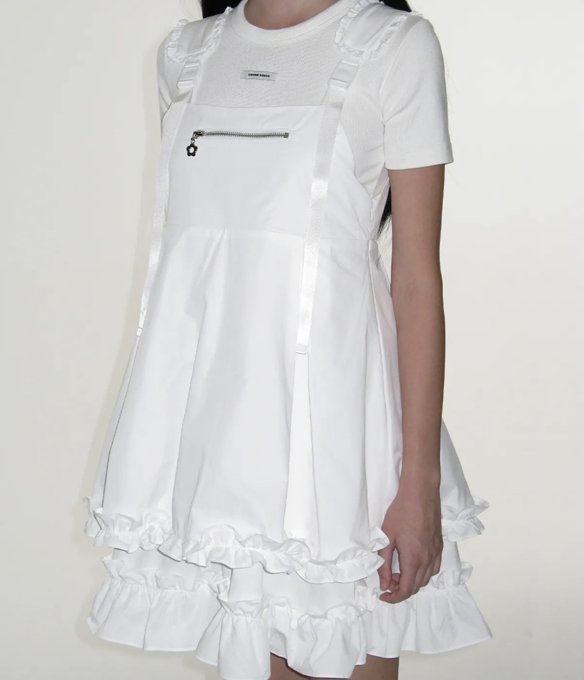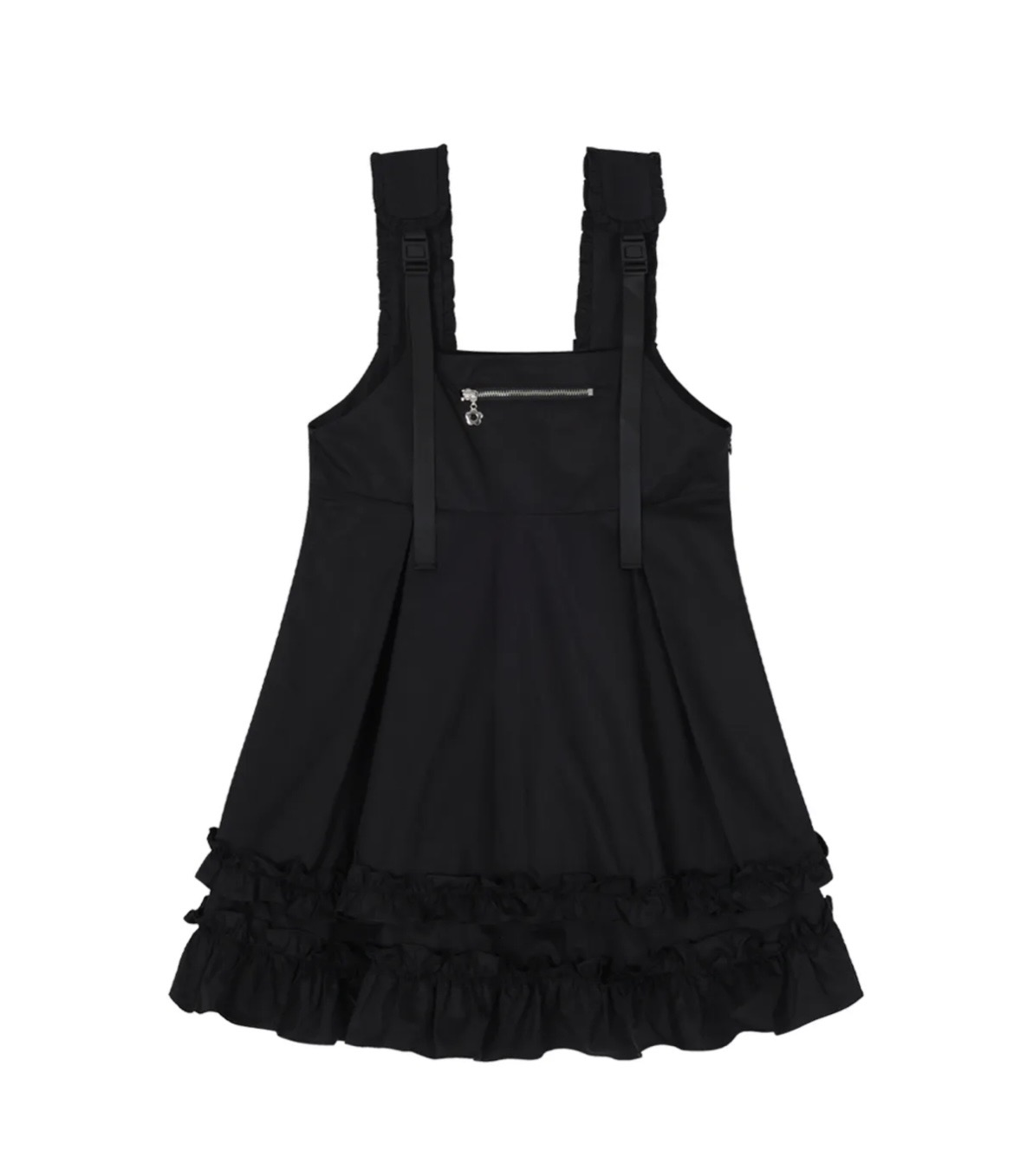 バックルストラップとフリルの組み合わせが個性的なワンピ。甘さの中にエッジを効かせたデザインで、一枚で存在感抜群!!