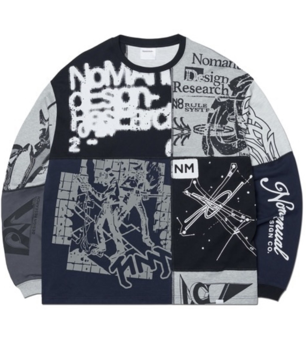↑【NOMANUAL】MIXED GRAPHIC LONG SLEEVE TEE