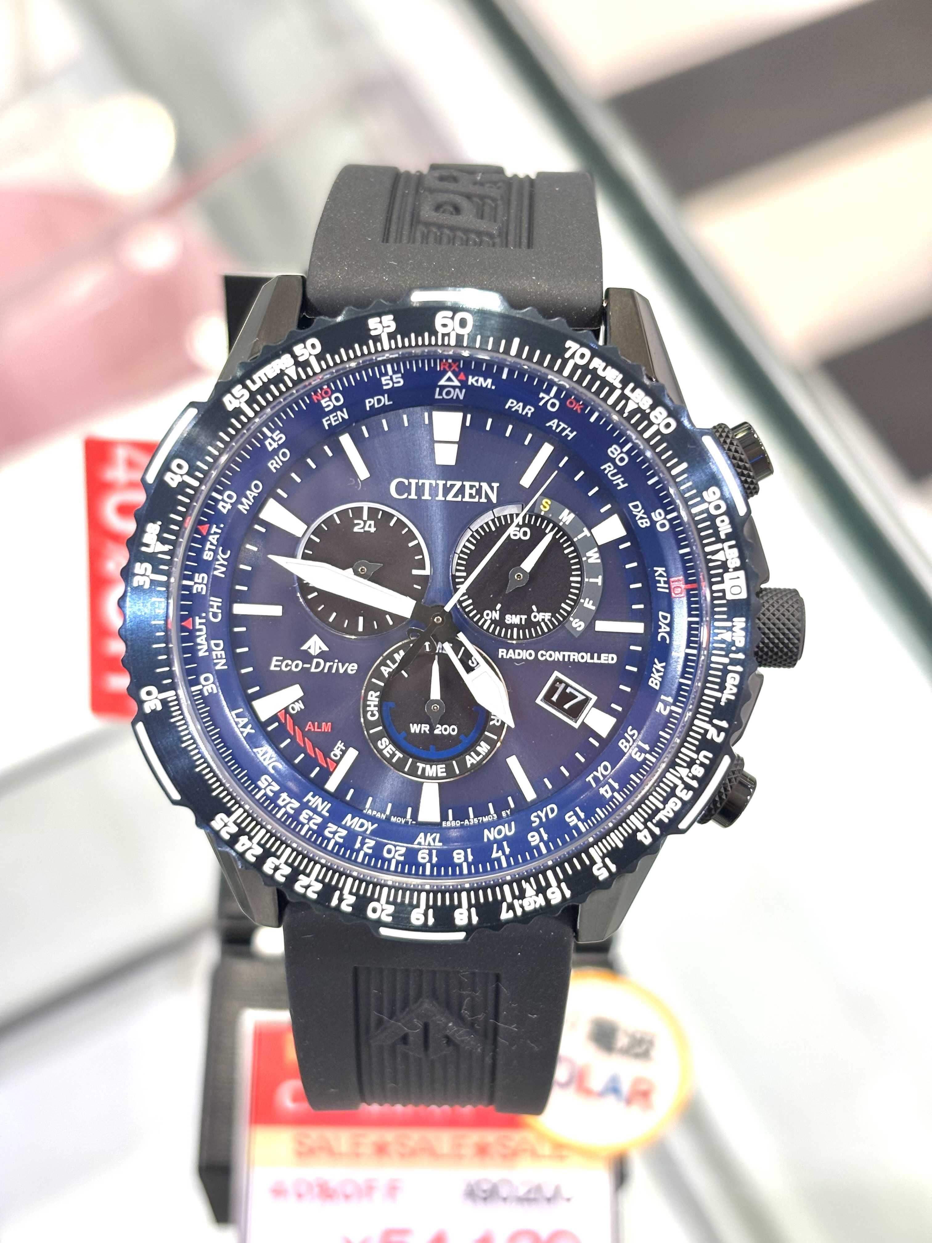 深夜の空を連想させる濃いブルーのベゼルと文字盤が特徴のパイロットウォッチ。