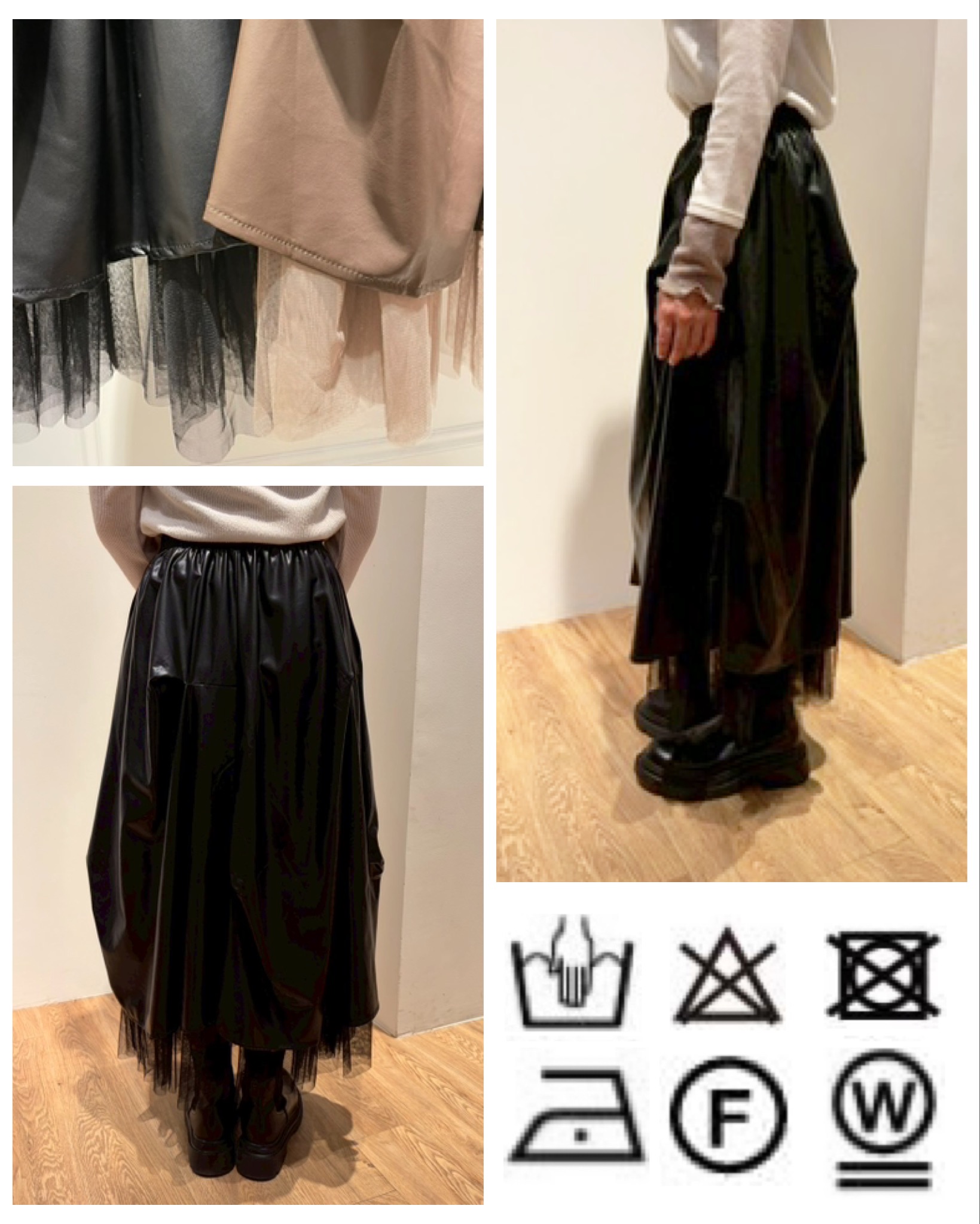 チュール×フェイクレザースカート