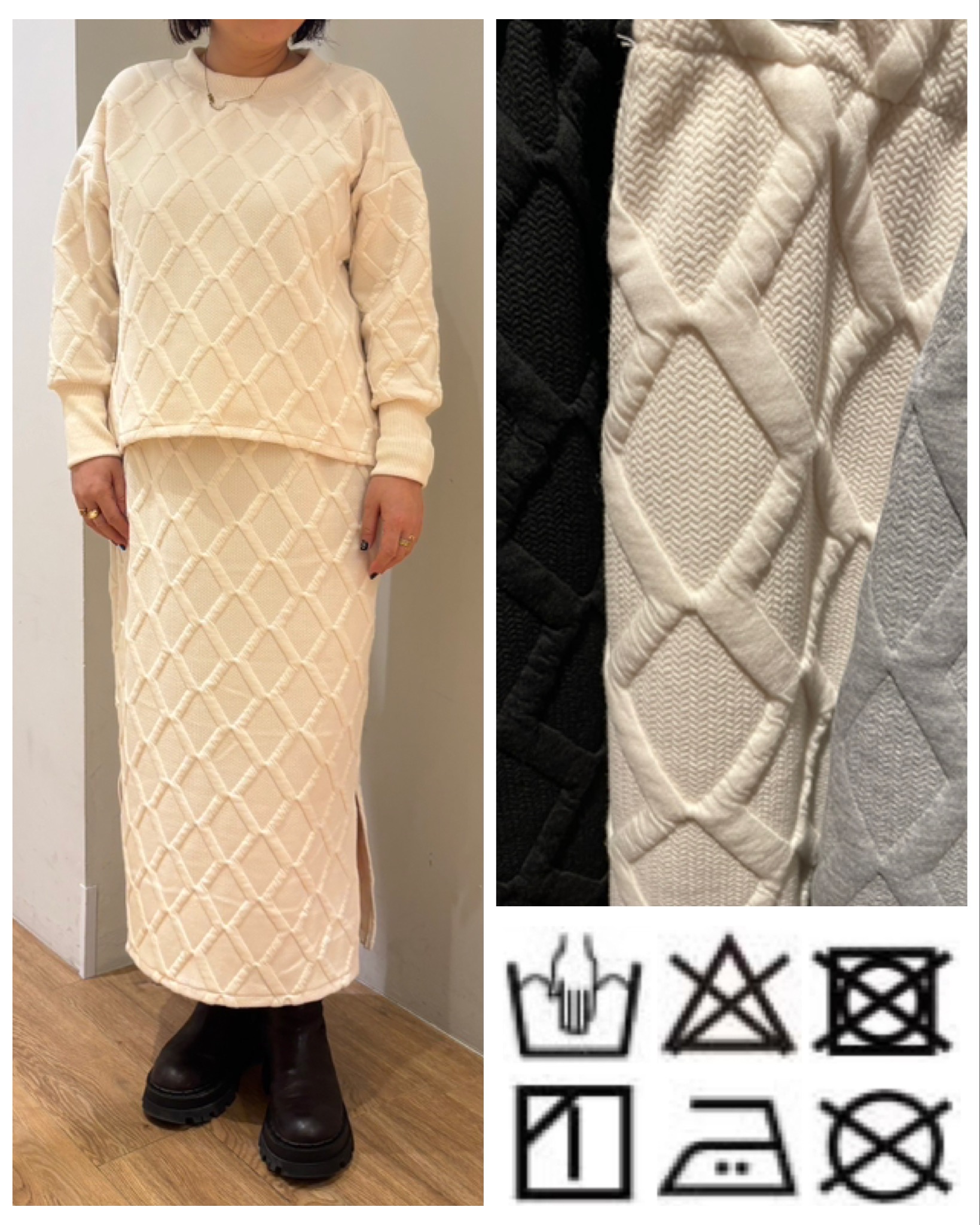 NEW 更新日:2025.12.29 anRipply 06-6646-1201 エンボスニットスカート エンボス加工が華やかなスカート☆ サイドのスリットもポイント♫ 別売のトップスと合わせるとセットアップとしても楽しめます♫ オンラインストア インスタグラム 関連キーワード #BANG!BANG!BARGAIN! #記念日 #プレゼント #新商品 #期間限定 #コーデ #お出かけ X この店舗のショップニュース テープロゴトレーナー レイヤードトレーナー チャーム付き配色ショルダーバッグ レオパードスカーフニット エンボスニットプルオーバー リバーシブルボアジップジャケット anRipply☆SALE ニット帽 ツイルサイドラインセンタープレスワイドパンツ フード付き裏キルトブルゾン