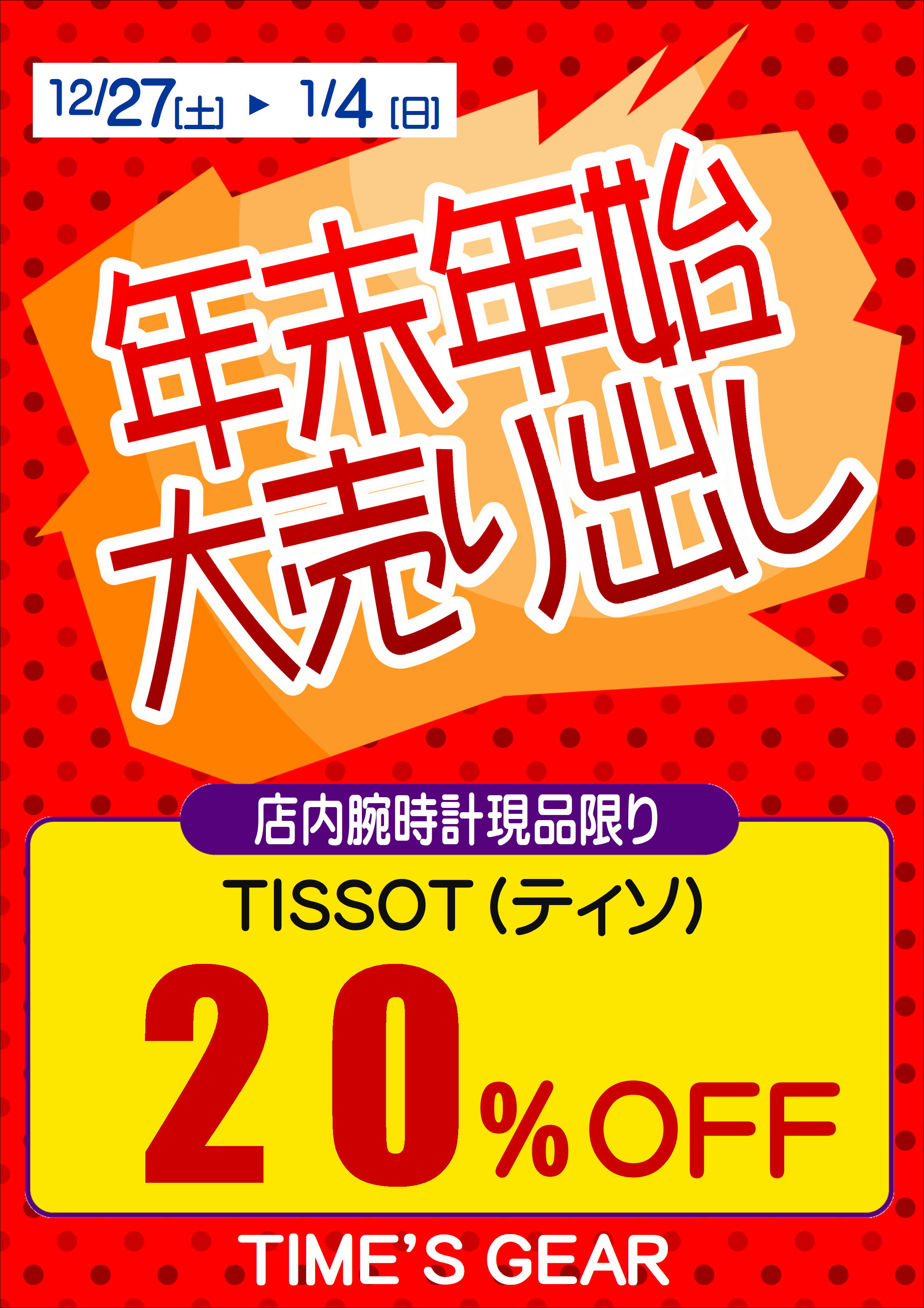 スイスウォッチのTISSOT、ファッションウォッチなども対象ですよ。