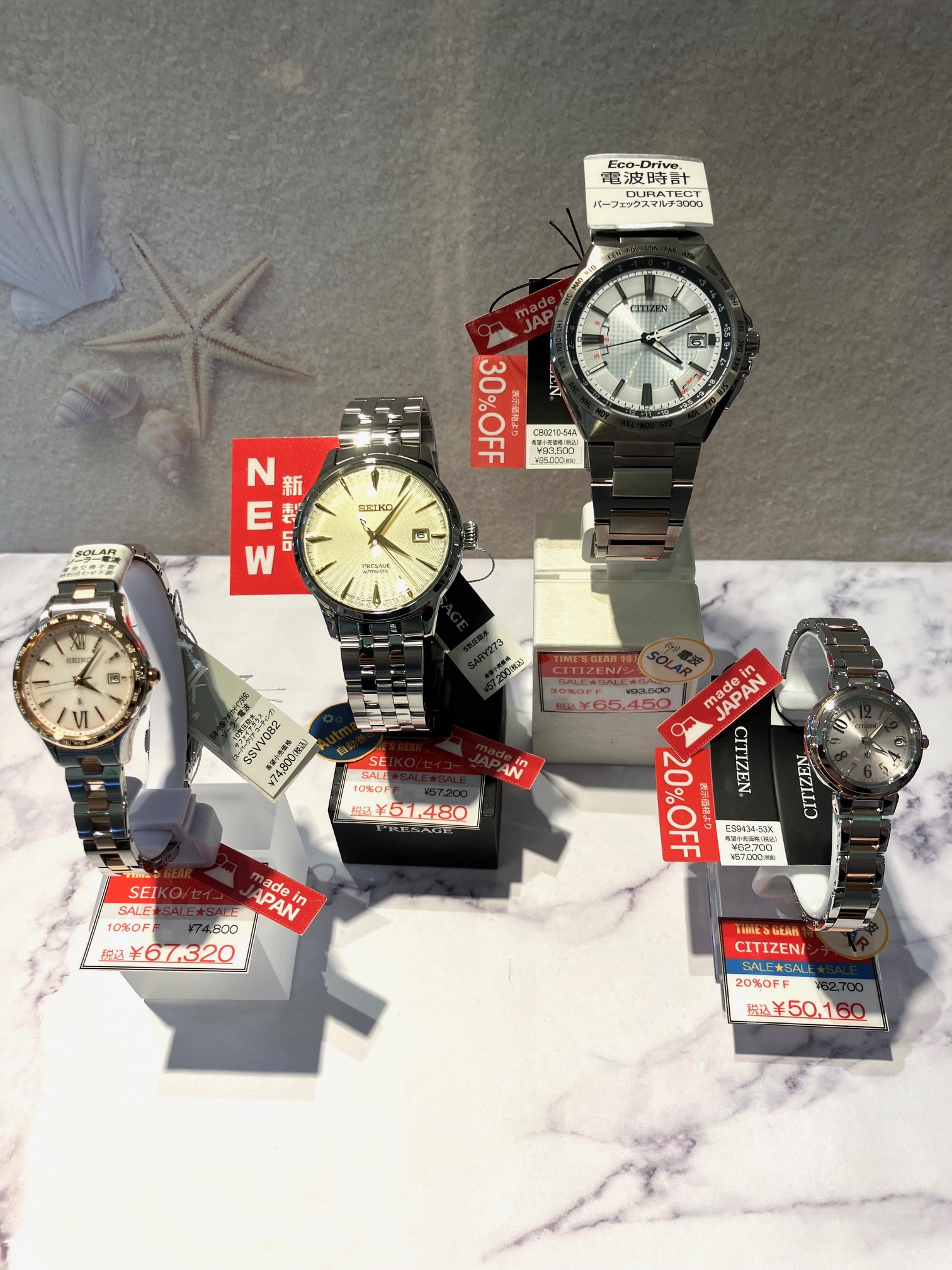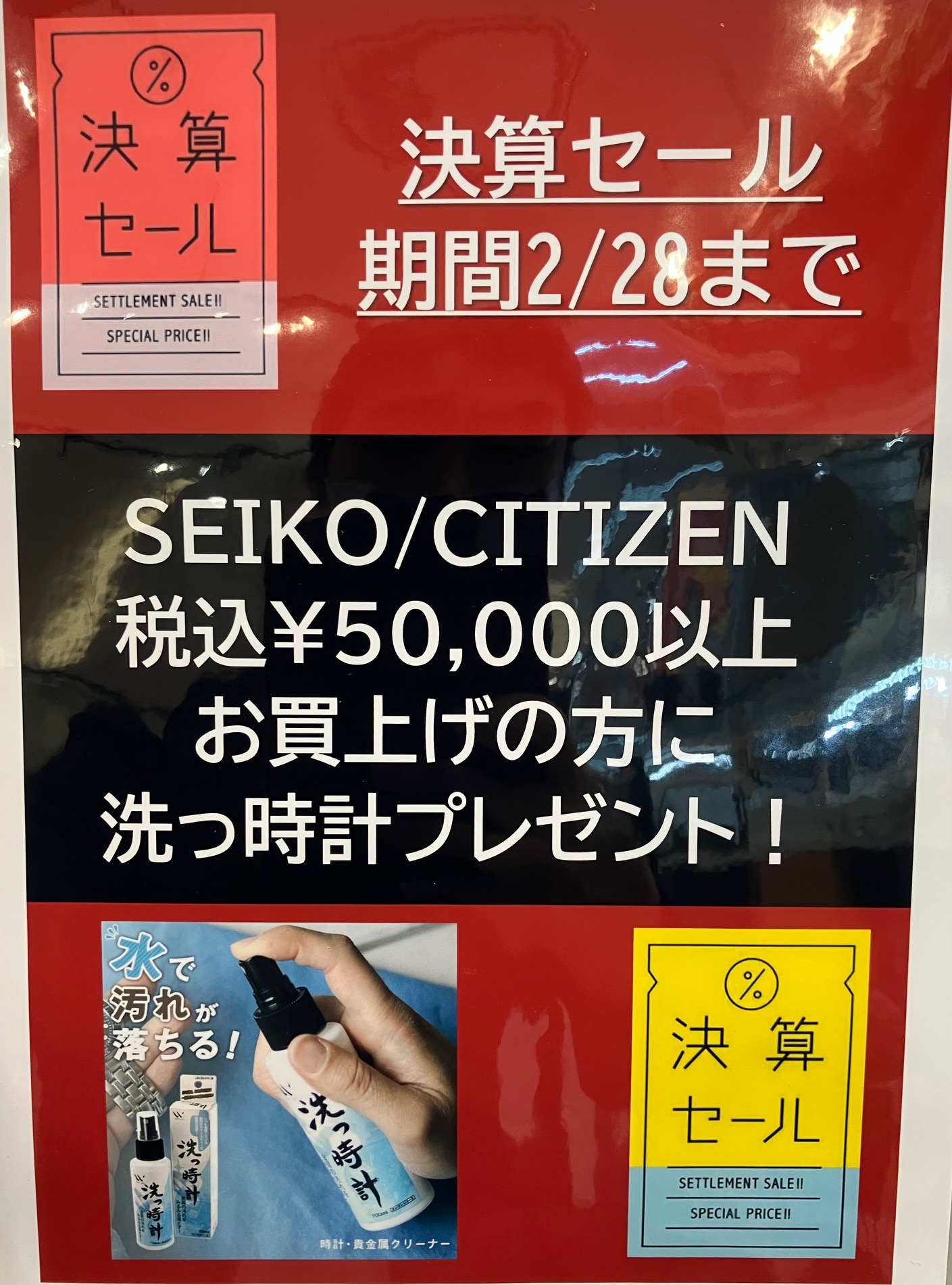 更新日:2026.02.07 TIME’S GEAR 06-6649-3366 【SEIKO/CITIZEN】決算セールキャンペーン TIME'S GEARあべのキューズモール店です。 只今、決算セール中にて、SEIKO/CITIZEN 税込¥50,000以上お買上げの方に、 洗っ時計プレゼント! キャンペーン期間は2/28迄 商品の一例になります。 他のシリーズもいろいろと展開しております! ぜひ店頭にてご覧下さいませ。 皆様のご来店心よりお待ちしております! また在庫確認などのお問い合わせはお電話にて承っております。お気軽にご相談ください。 ****************************************** JAPAN TAX-FREE SHOP 免税店 関連リンクを見る X この店舗のショップニュース 腕時計の電池交換お任せください! 新たにキャンペーンスタート♪ オリエント 新作が仲間入り!! 1853年創業のTISSOT レディースウォッチがオススメな理由! COACHおすすめモデル! 【TISSOT】磁気に負けない!ジェントルマンの魅力!【T127.407.11.351.00】 歴史が深いBULGARI・BULGARI 【ORIENT】令和の時代に敢えてクラシックウォッチを着用しよう! 【SEIKO】上品さを演出する深みのあるグリーンダイヤル【SARY237】 大谷翔平選手着用モデルが再入荷!!
