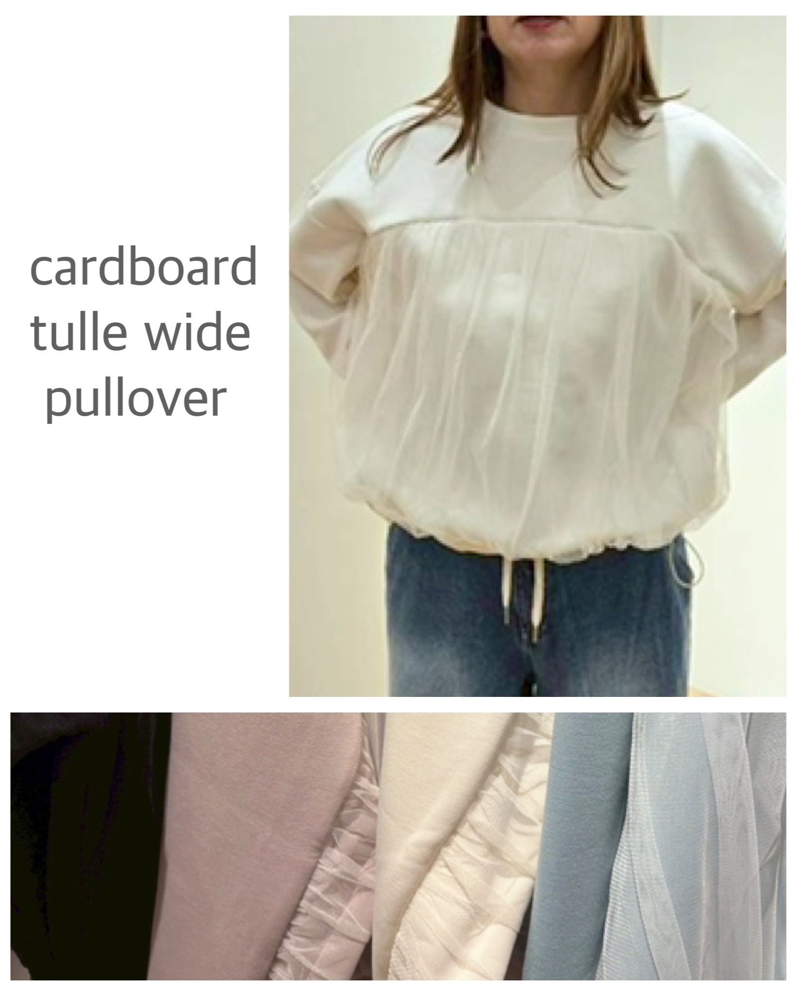 更新日:2026.02.07 anRipply 06-6646-1201 ダンボールチュールワイドプルオーバー チュールとのドッキングがポイントのプルオーバー☆ カラーは春らしい4色展開!! 裾はドロストで絞れます♫ オンラインストア インスタグラム 関連キーワード #記念日 #プレゼント #新商品 #コーデ #お出かけ X この店舗のショップニュース コンパクトスムースチュールレイヤードロゴプリントプルオーバー スラブフロッキーロゴロンT インスタライブ パディングトートバッグ 布帛×ニットガレッジロゴプルオーバー 裾バルーンシルエットマウンテンパーカー ダンボールギャザーブルゾン ポイント5倍フェア ギャザーバックデザインチェック柄ブラウス デニムティアードスカート