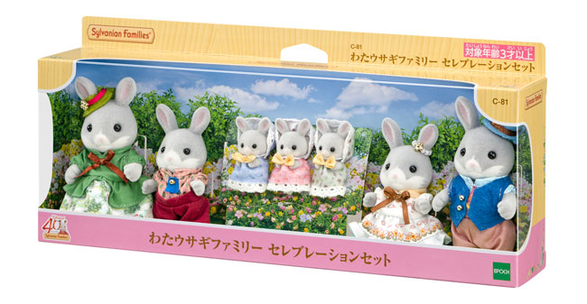 セット内容/ わたウサギのお父さん、わたウサギのお母さん、わたウサギの男の子、わたウサギの女の子、わたウサギの小さい赤ちゃん(ブルーの服)、わたウサギの小さい赤ちゃん(レッドの服)、わたウサギの小さい赤ちゃん(グリーンの服)