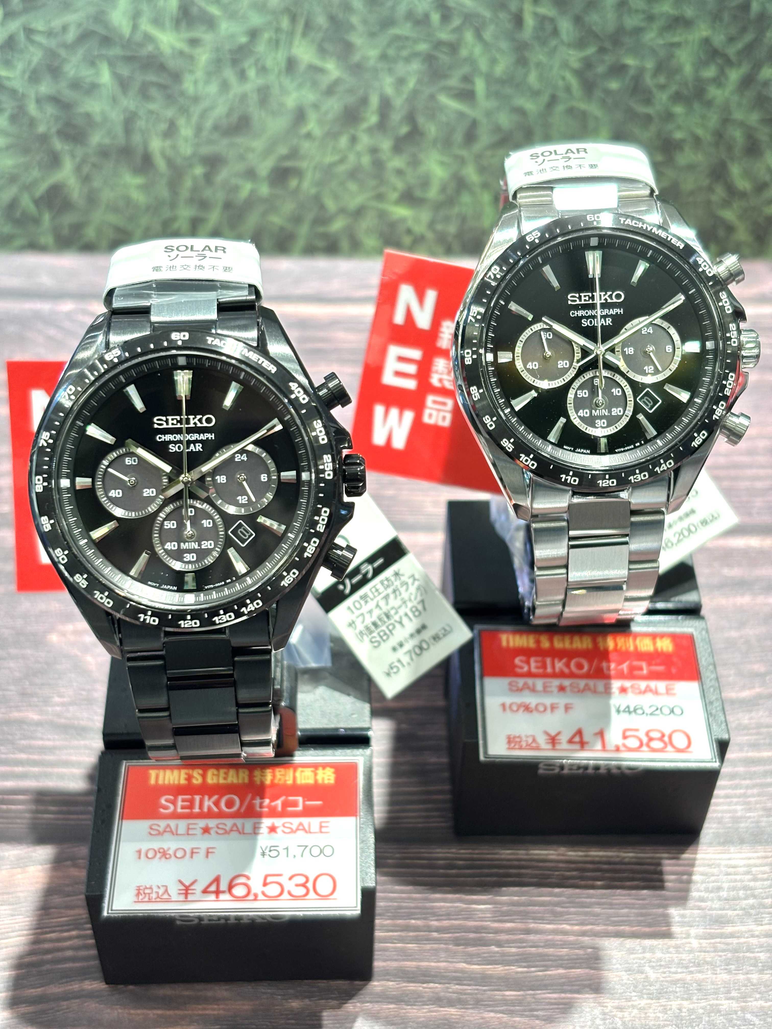 NEW 更新日:2026.03.10 TIME’S GEAR 06-6649-3366 SEIKO新作入荷! TIME'S GEARあべのキューズモール店です! SEIKO新作が入荷しています! ぜひ、チェックしてみてください!! 左:SBPY181 価格:¥46,200(税込)→¥41,580(税込)10%OFF 右:SBPY183 価格:¥46,200(税込)→¥41,580(税込)10%OFF 左:SBPY187 価格:¥51,700(税込)→¥46,530(税込)10%OFF 右:SBPY185 価格:¥46,200(税込)→¥41,580(税込)10%OFF ***************************************** 関連リンクを見る 関連キーワード #新商品 X この店舗のショップニュース 腕時計の電池交換ご相談ください。 リングウォッチ「G-SHOCK nano」入荷! 電池交換ご相談ください!! 【CITIZEN】人気のATTESAが30%OFFで入荷!! 【CITIZEN】海外で評価の高い「TSUYOSA Collection」 G-SHOCKなどなど防水時計の電池交換もご相談ください!! xC30周年記念モデル!本日より発売開始です! ロレックス分解掃除お任せください 腕時計の電池交換お任せください! 新たにキャンペーンスタート♪