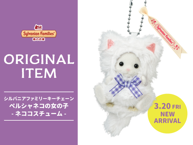【NEW ORIGINAL ITEM】「シルバニアファミリーキーチェーン ペルシャネコの女の子 -ネココスチューム-」新発売♪