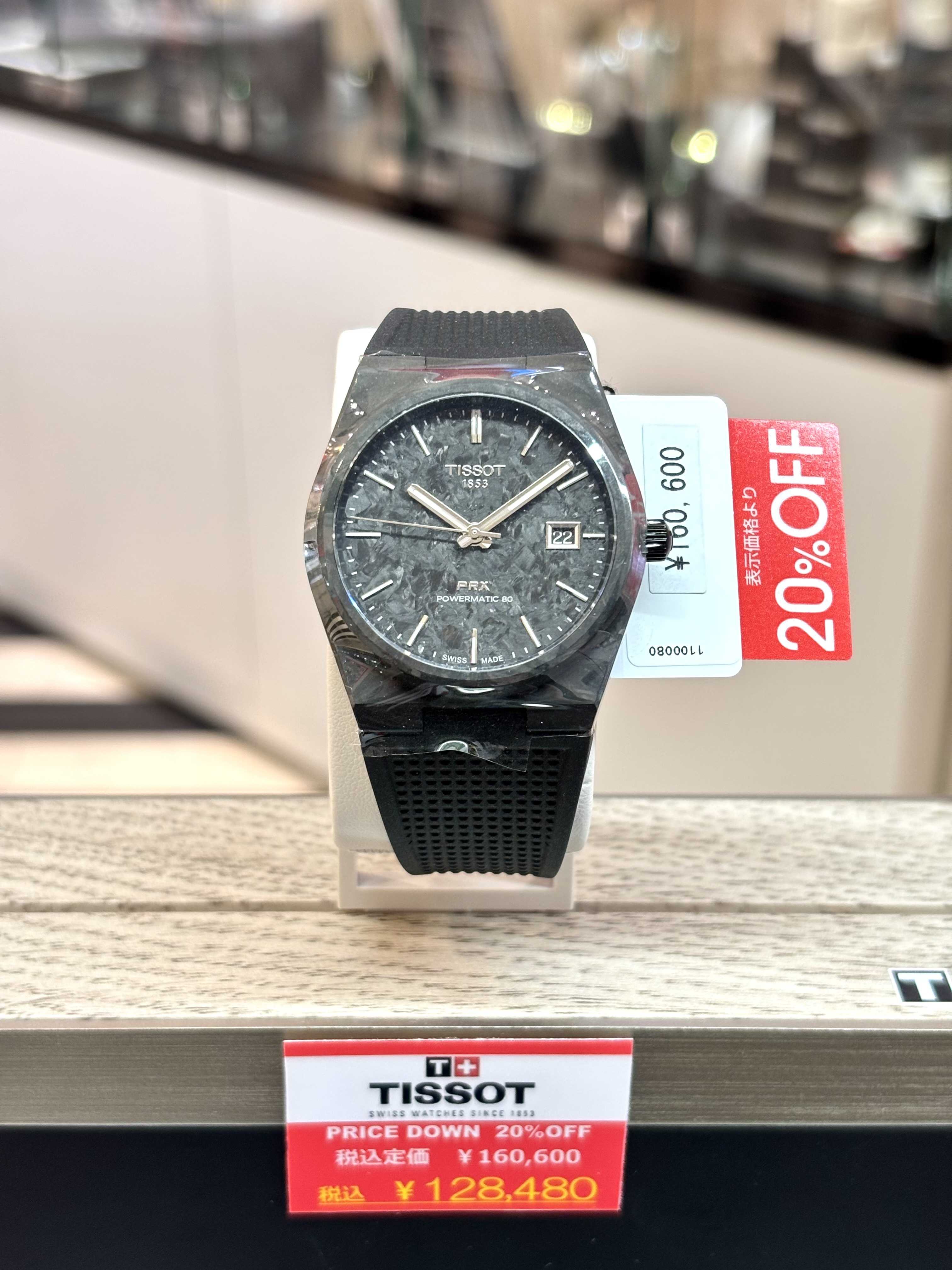 当店では、TISSOT在庫処分で定価より20%OFFセール開催中です。