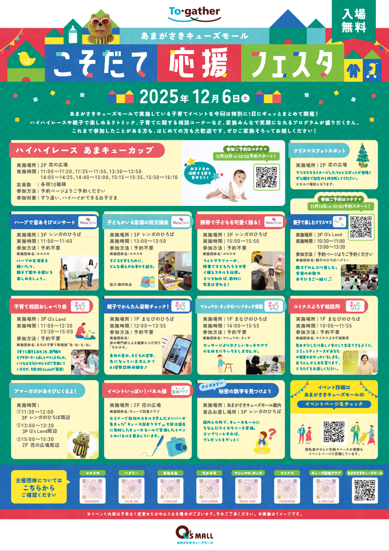 あまがさきキューズモールで実施している子育てイベントを今回は特別に1日にギュッとまとめて開催!