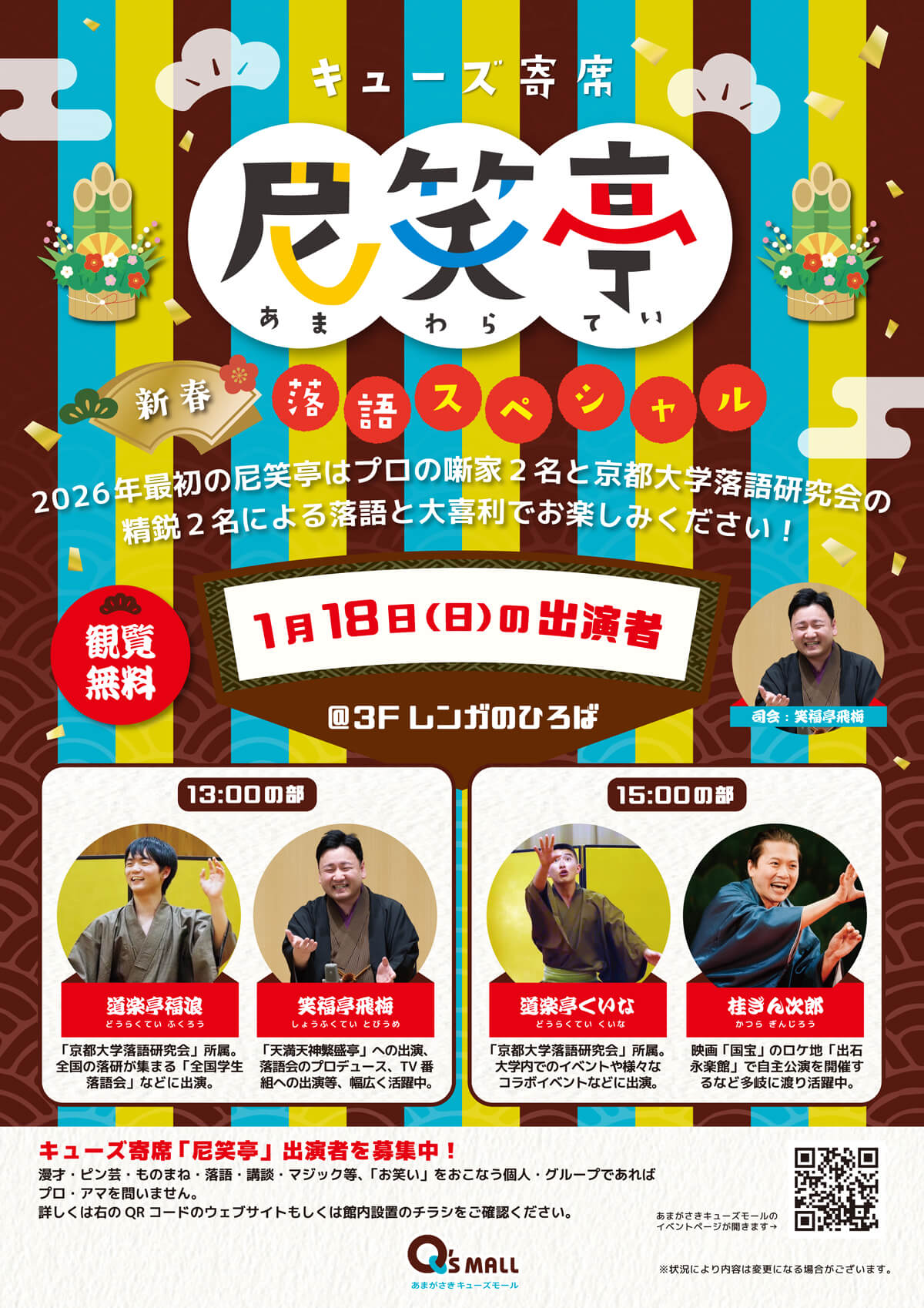 キューズ寄席 尼笑亭(あまわらてい) 新春落語スペシャル