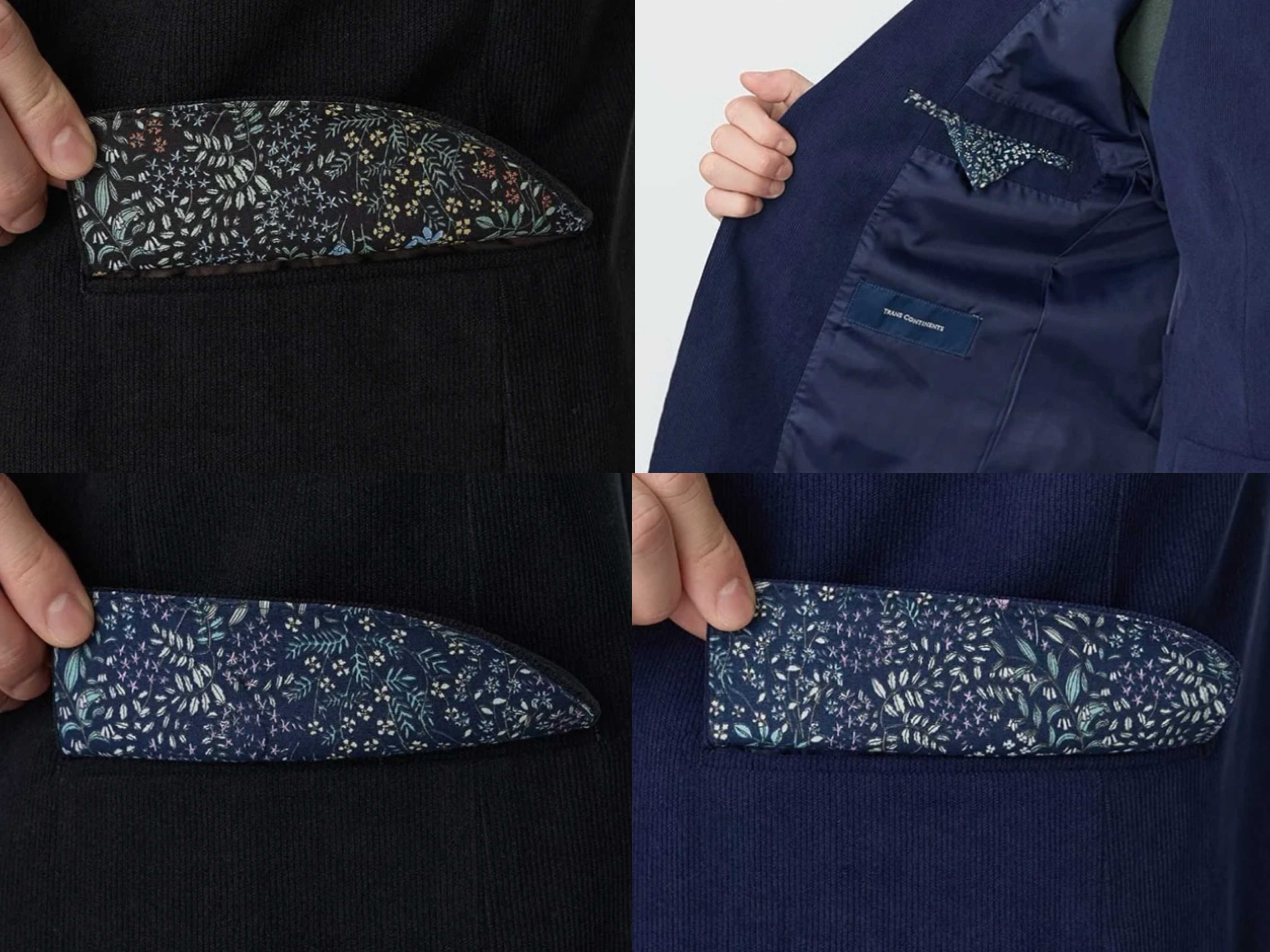 フラップ裏や内ポケット口にはフラワープリントを取り入れて、
