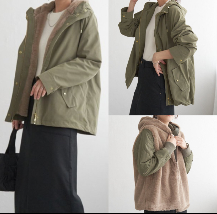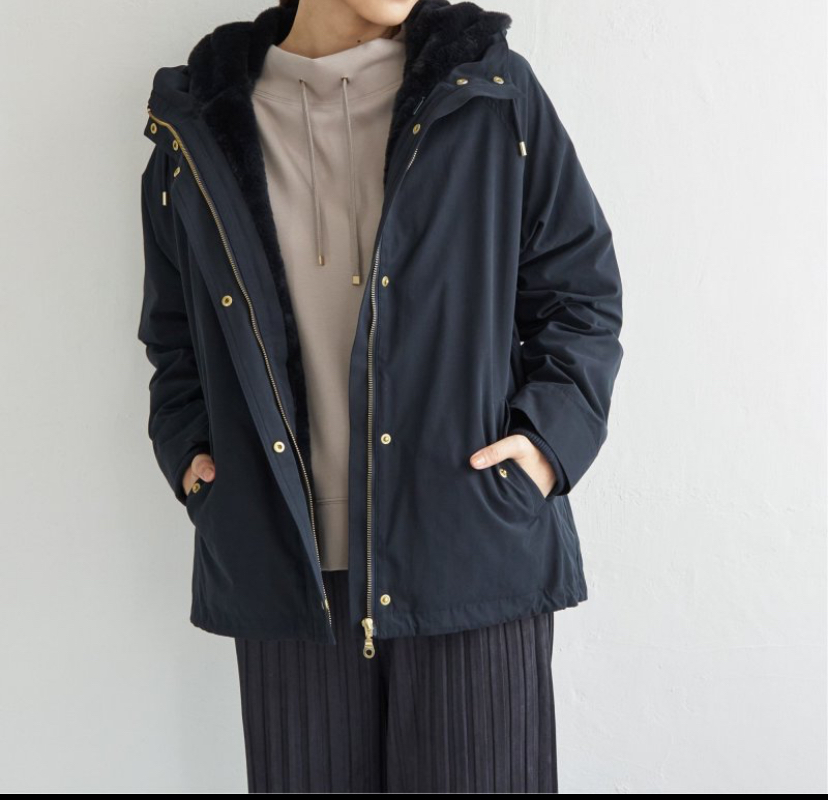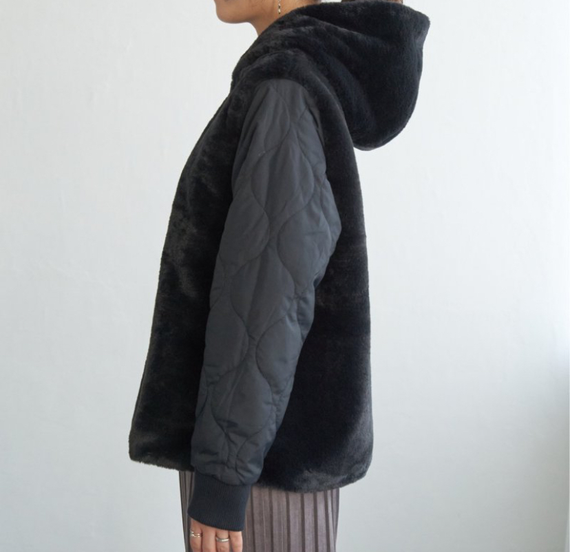 ライナーはフェイクファーと中綿キルトの切り替えデザインで、着心地も見た目もあたたか。