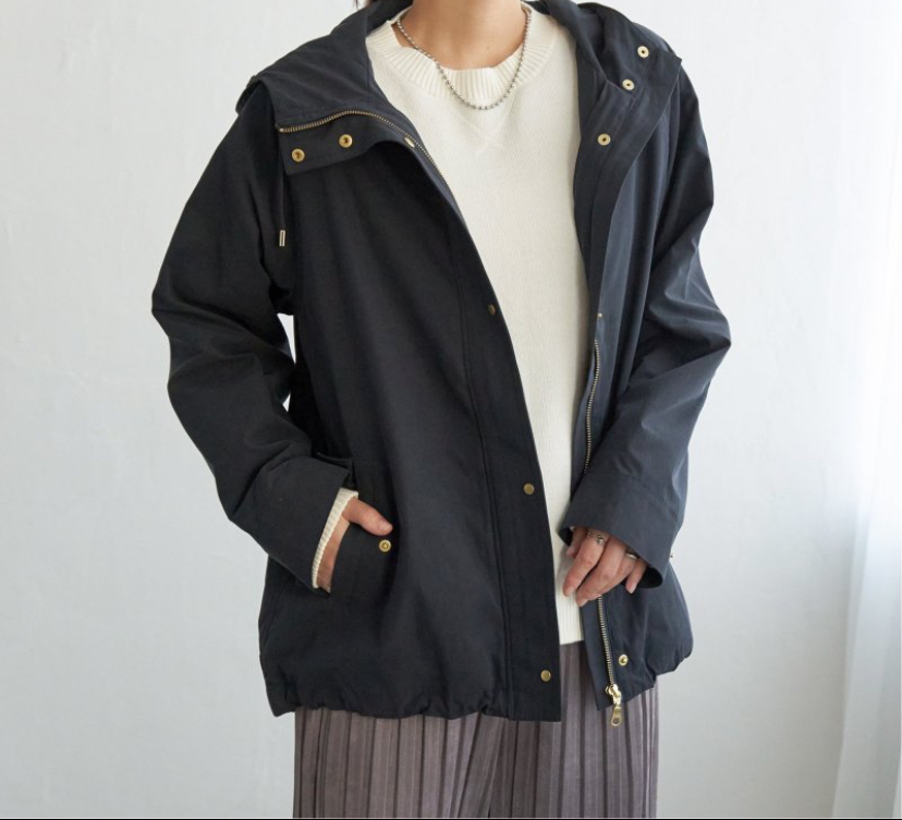 ラグランスリーブでゆったりしたミドル丈の3WAYマウンテンパーカー。