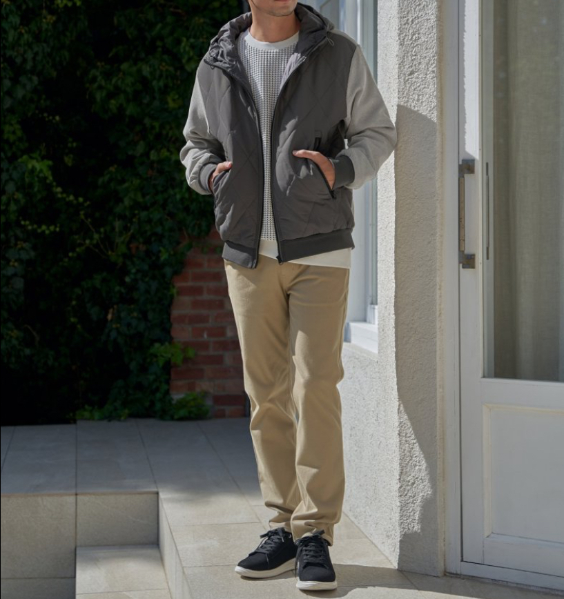 袖と裾にリブを配し、よりアウターライクに着用可能。