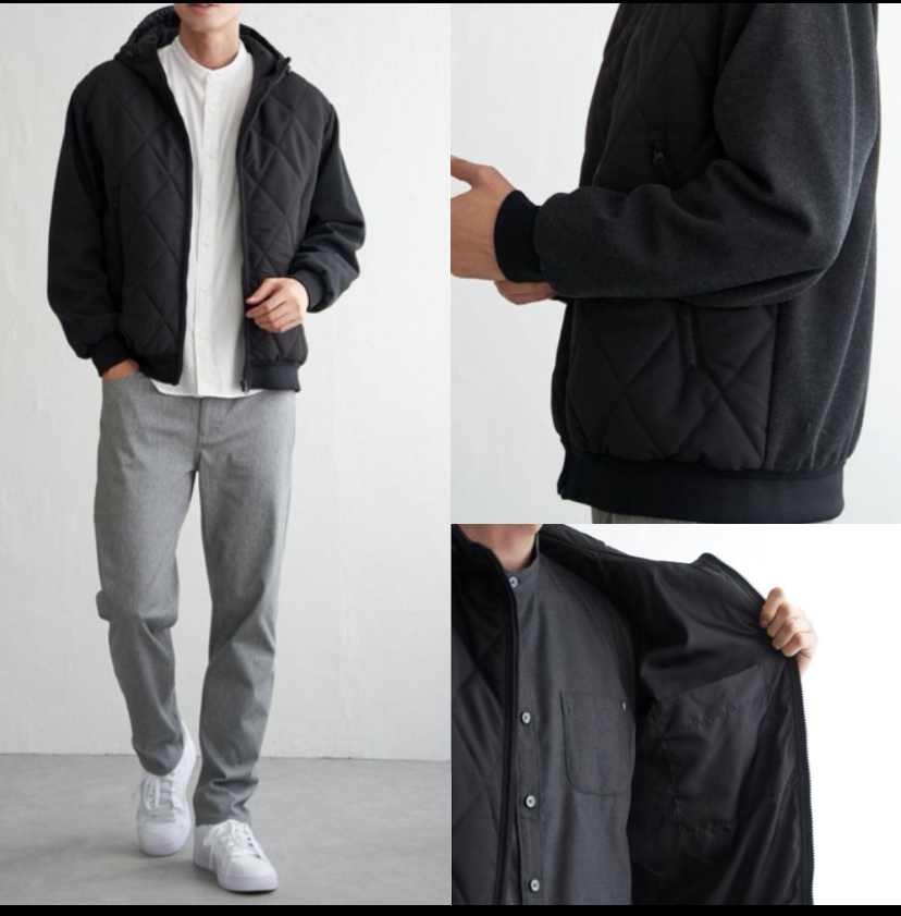 ダイヤキルトと切り替えデザインが映えるアウター