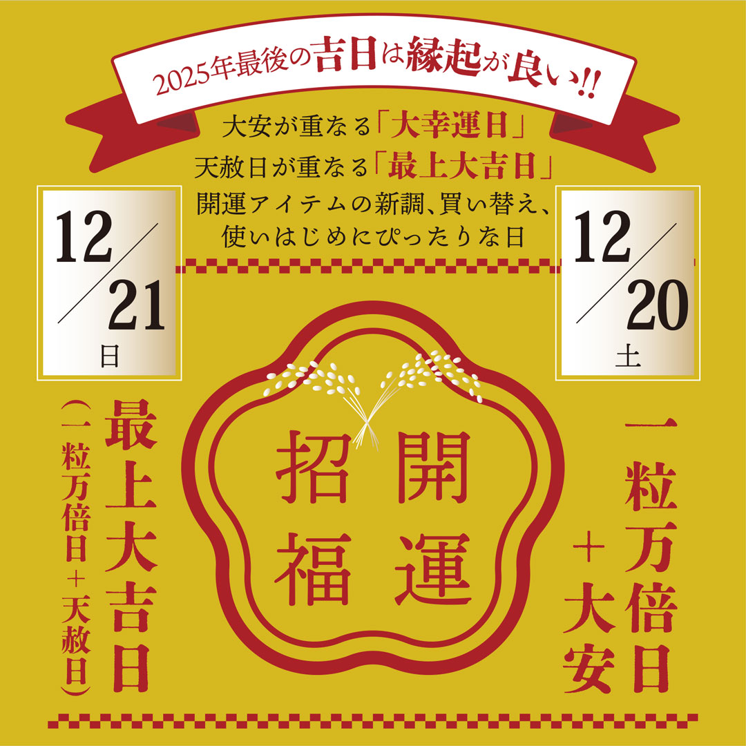 12月21日(日)年に数回しか訪れない【最上大吉日】です