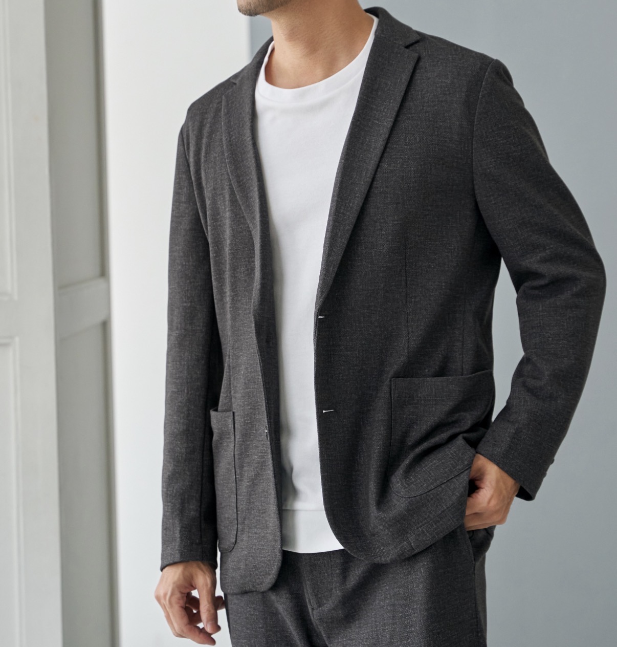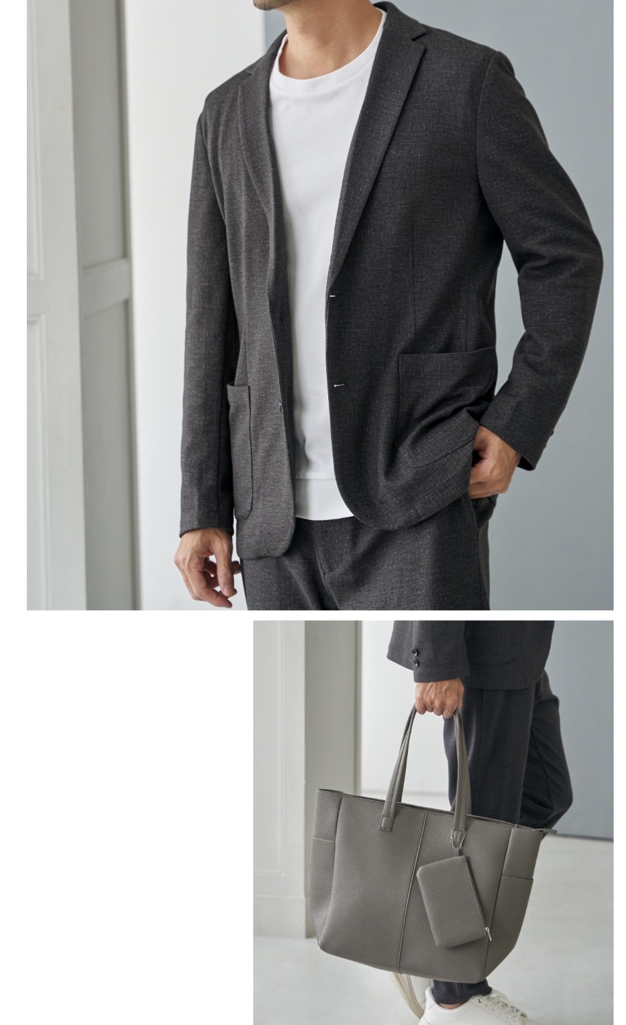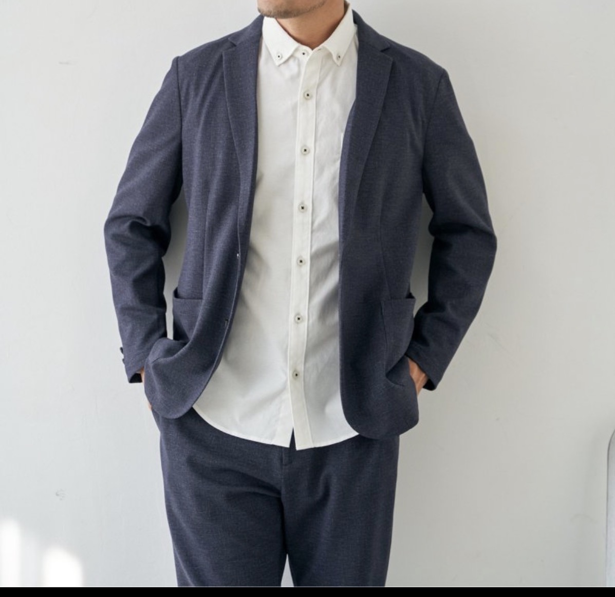 絶妙なデニム見え表現に加え、ベース素材に凹凸素材を使用することで、ジャケットセットアップに適した価値観のある見た目を表現。