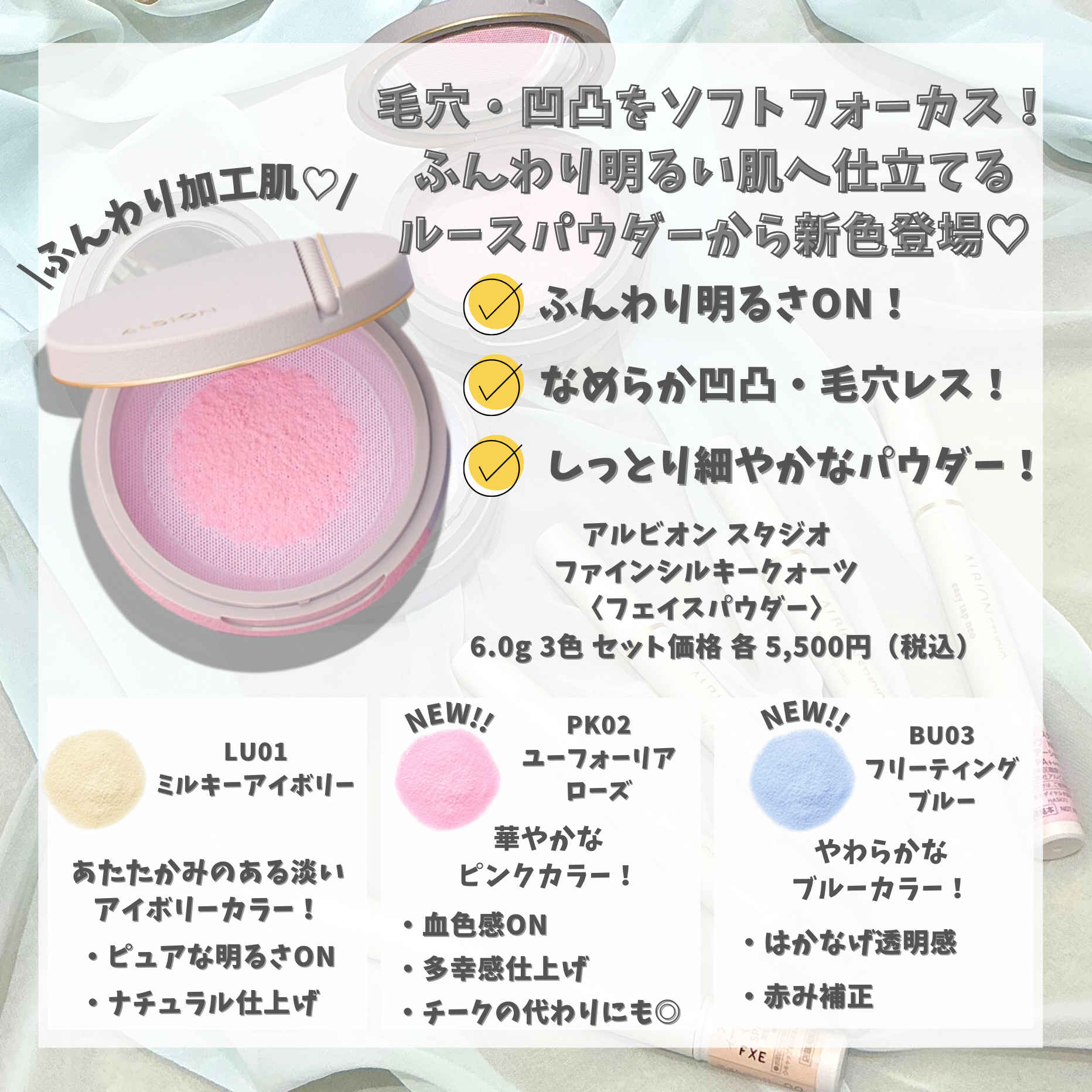 血色感UPのピンクカラーと透明感が爆上がりするブルーカラーがデビュー