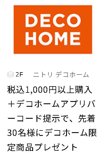 NEW 更新日:2026.02.26 ニトリ デコホーム 0120-014-210 キューズデー特典案内 2月から「キューズデイ」特典配布スタート! デコホームでお買い物して、プレゼントをゲットしよう。 X この店舗のショップニュース 生活応援CP springキッチン ドレスタオル シルクまくらカバー 新生活応援キャンペーン springベッド コスメ収納アイテム セットカバーリング