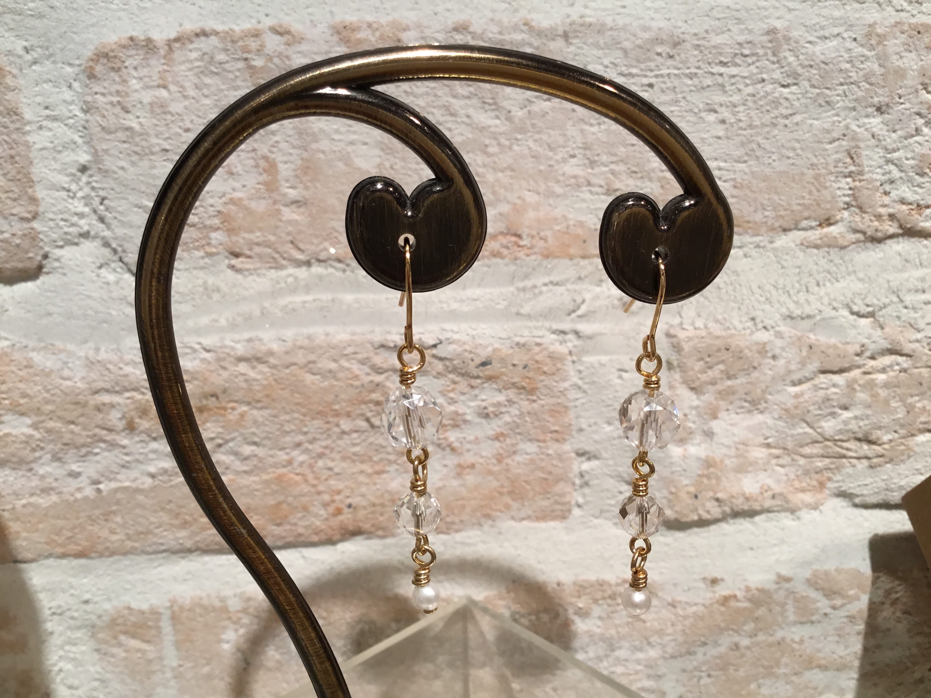 水晶のキラキラ感、パールのつや感がとても可愛いピアスです
