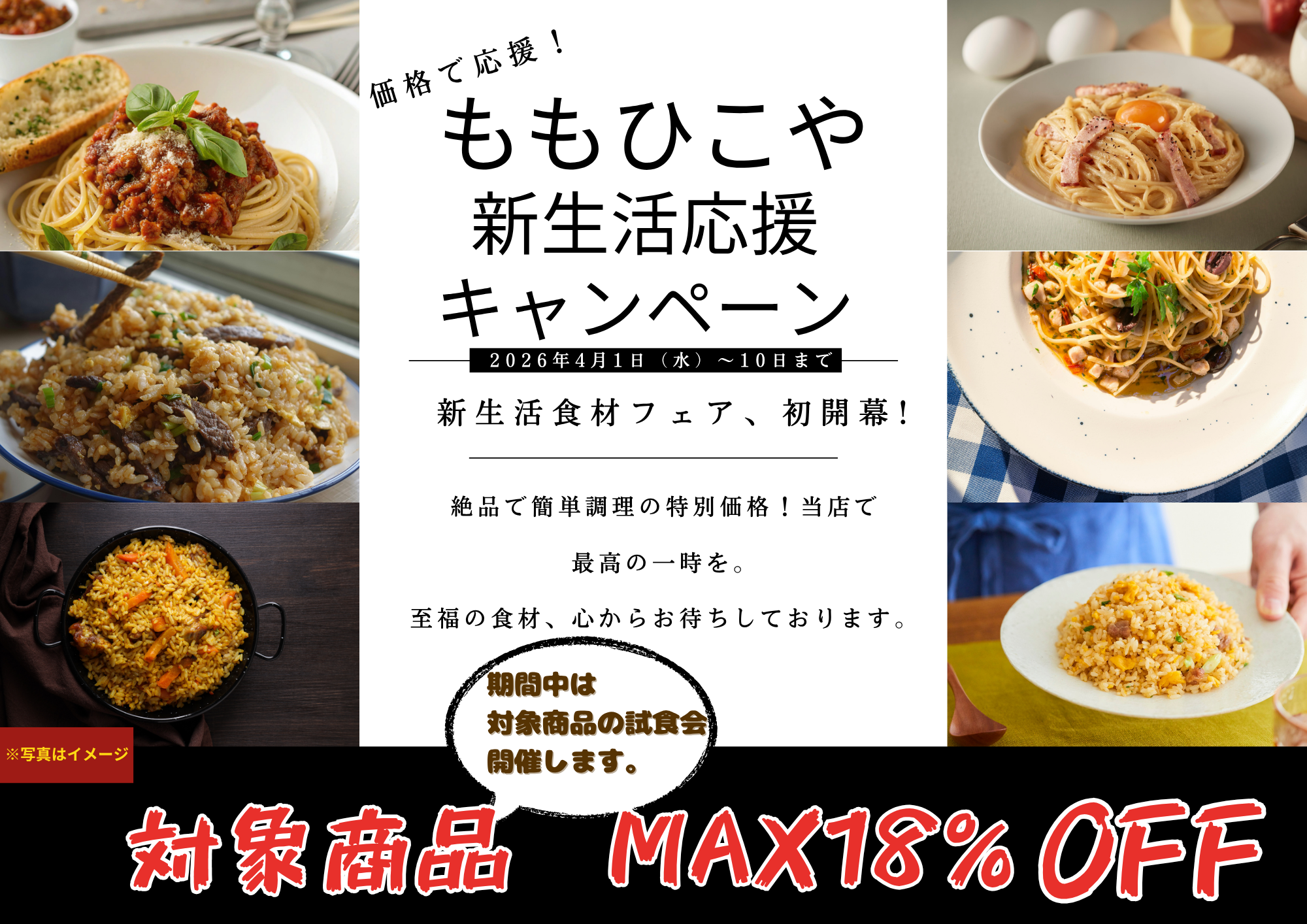 NEW 更新日:2026.04.07 ももひこや 06-6480-8010 数量限定!10日までのSALE! 関連キーワード #セール X この店舗のショップニュース 新商品!4/8~ START! 驚安!大容量!業務用!ハッシュポテト★
