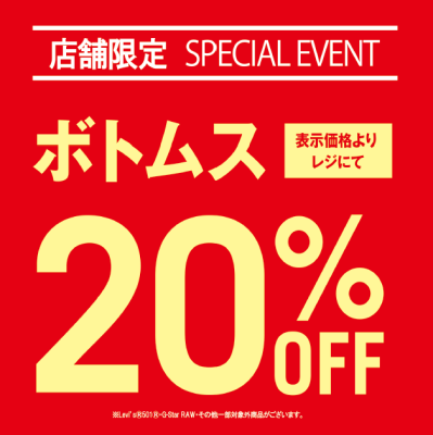 【10/31~11/1の4日間 期間限定イベント】 熱戦に感謝!ボトムス20%OFFキャンペーン開催