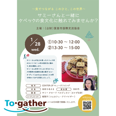 箕面市国際交流協会主催 サミーさんと一緒にケベックの食文化に触れてみませんか?