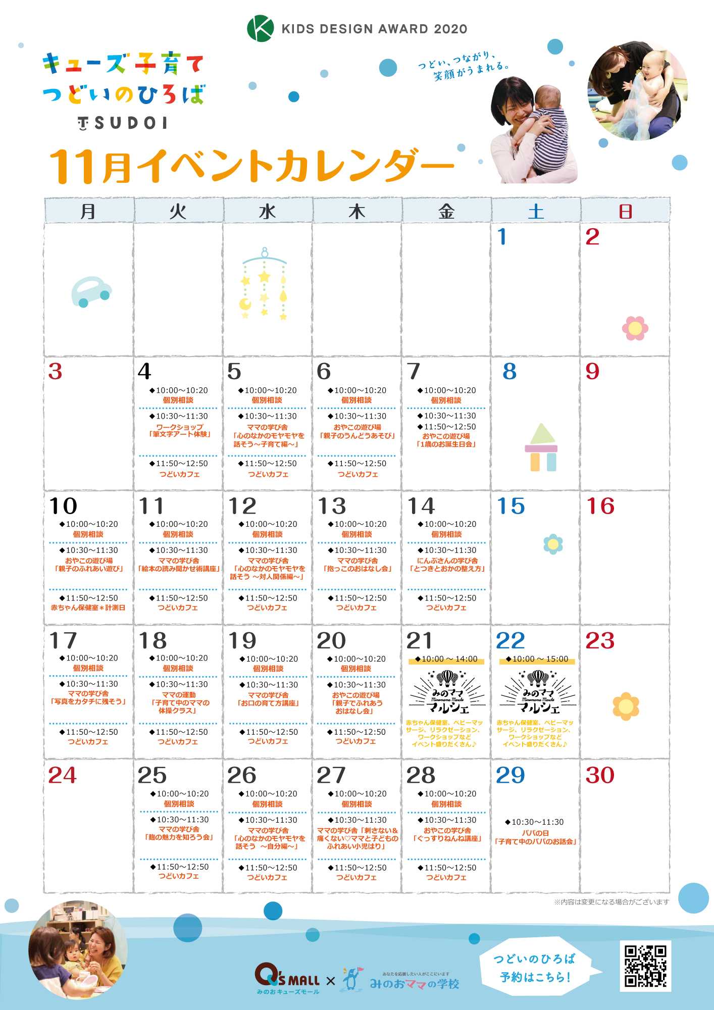 【11月後半】キューズ子育てつどいのひろばイベント情報 |みのおママの学校