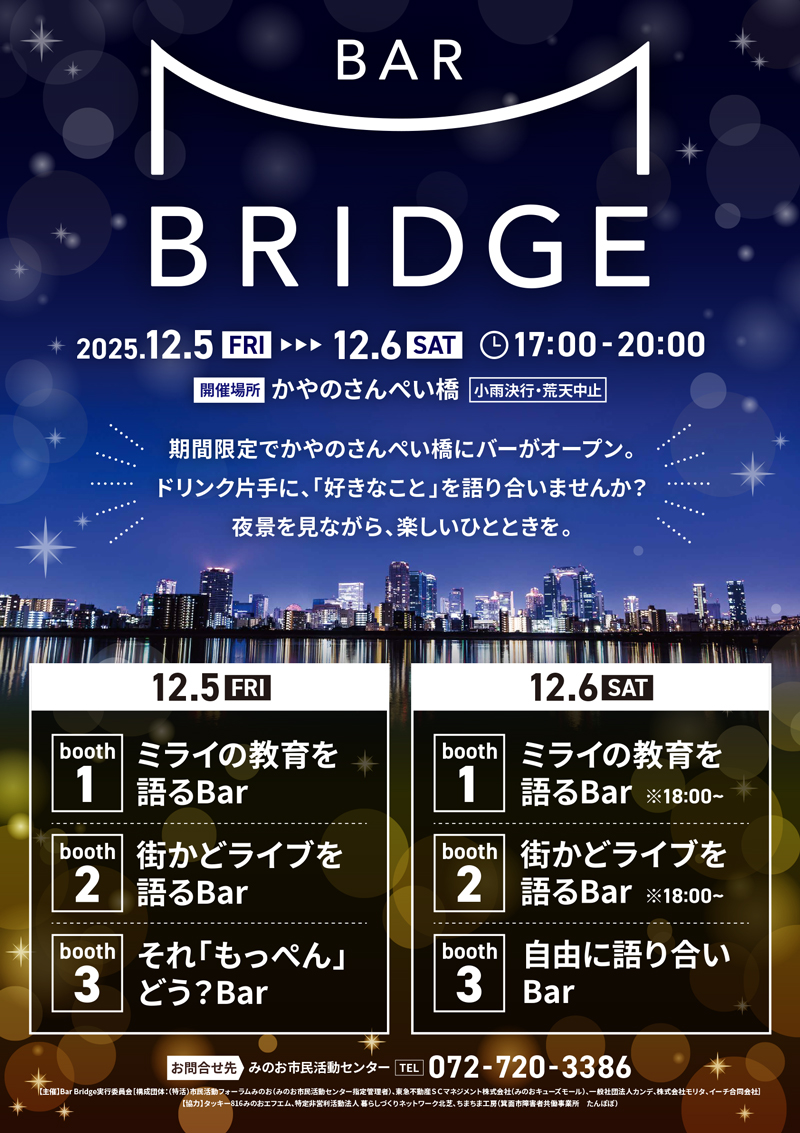 [構成団体:(特活)市民活動フォーラムみのお(みのお市民活動センター指定管理者)、東急不動産SCマネジメント株式会社(みのおキューズモール)、一般社団法人カンデ、株式会社モリタ、イーチ合同会社]