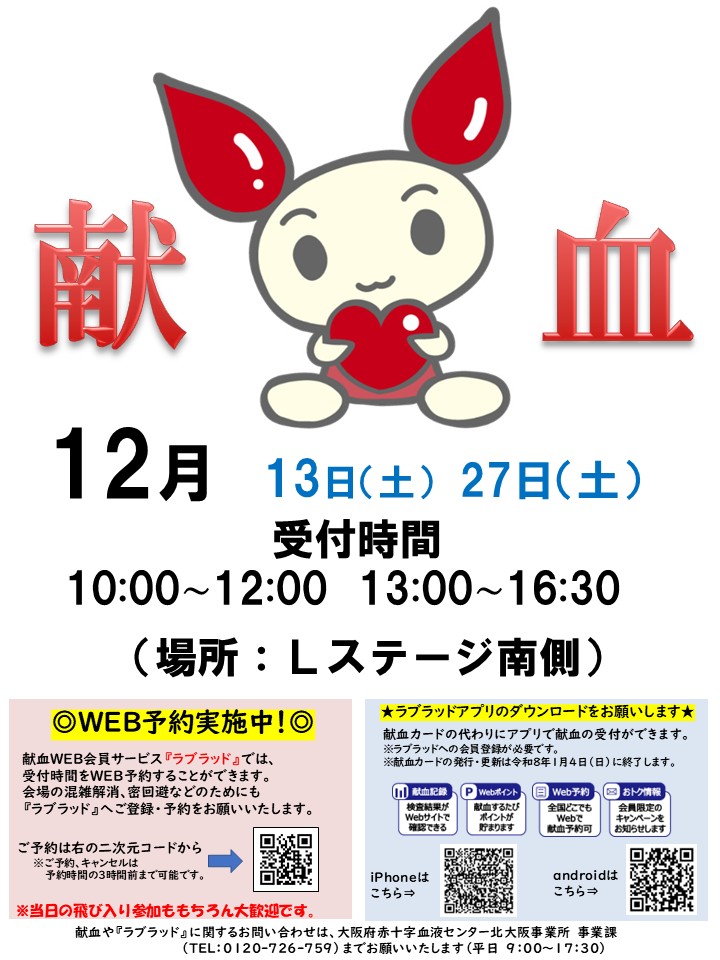 大阪府赤十字血液センター 北大阪事業所 TEL:072-632-4747