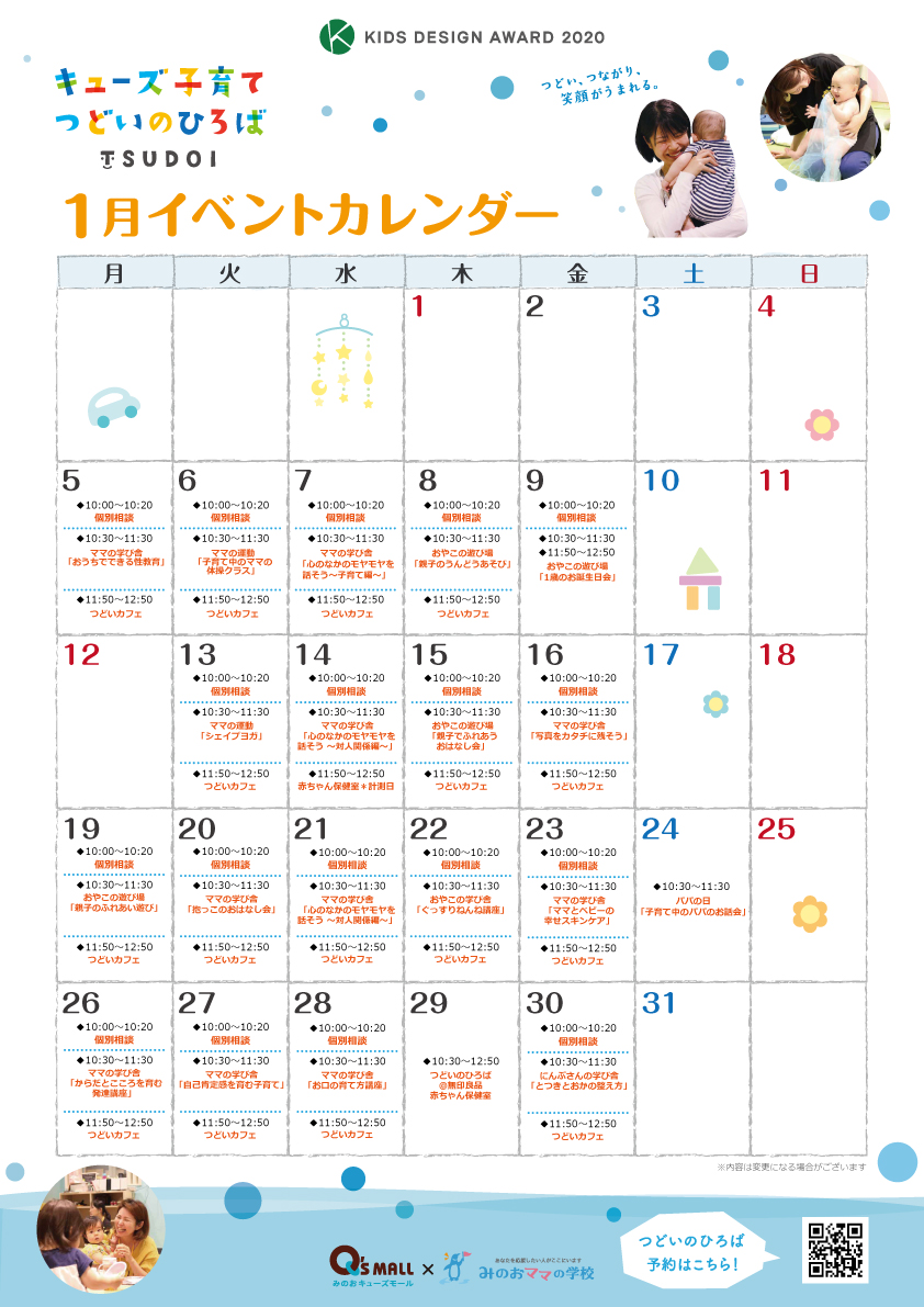 1月21日(水)「心のなかのモヤモヤを話そう~対人関係編~」1月23日(金)「ママとベビーの幸せスキンケア」