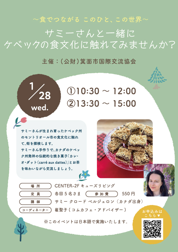 箕面市国際交流協会主催 サミーさんと一緒にケベックの食文化に触れてみませんか?
