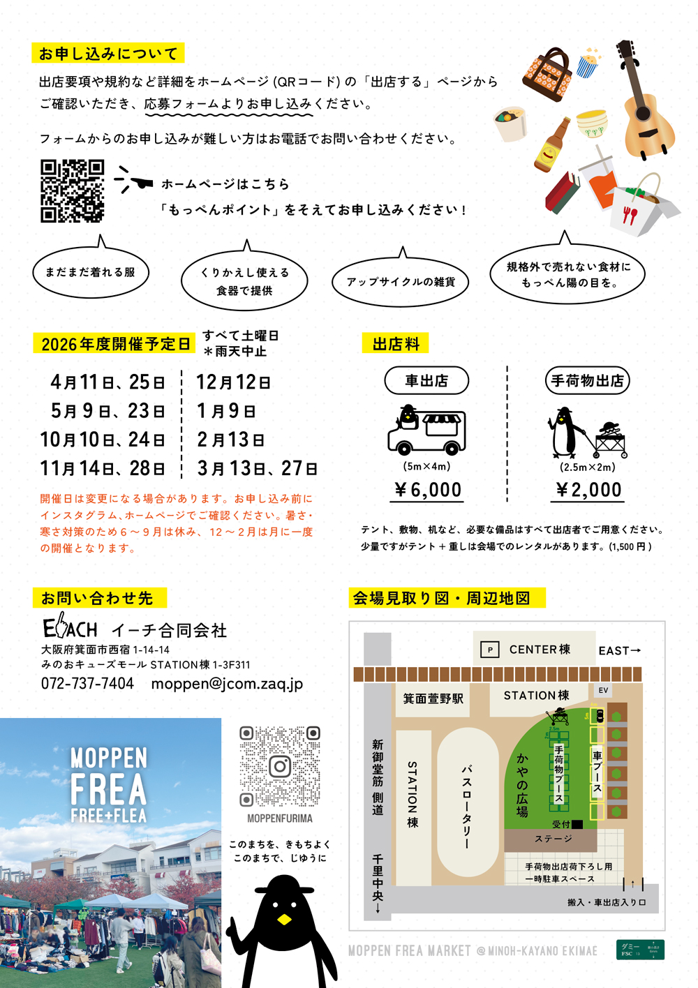 一度いらなくなったものでも、「もっぺん」をあいことばに、その価値を見つめなおし、「もっぺん」使うことに豊かさを感じることができるフリーマーケットです。