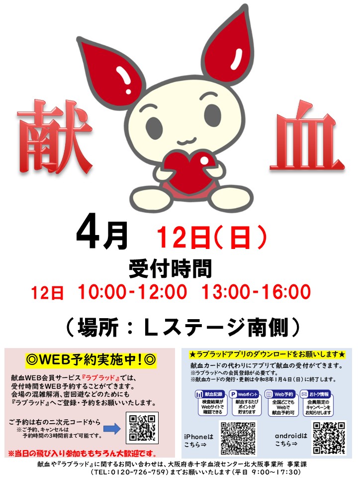 大阪府赤十字血液センター 北大阪事業所 TEL:072-632-4747