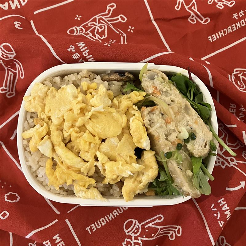 口コミを参考に、炒り卵をのせてお弁当にしてみました。