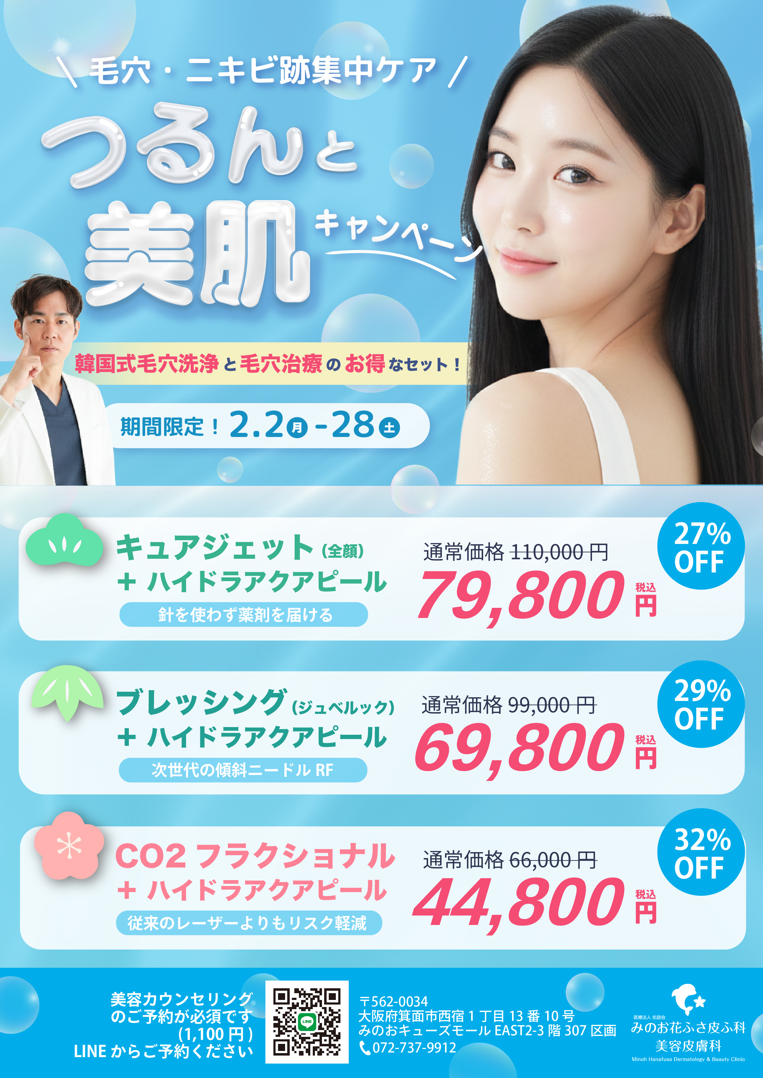 毛穴汚れを洗浄し、お肌状態に合わせた治療で毛穴・ニキビ跡を集中ケアする、期間限定セットです????♀️