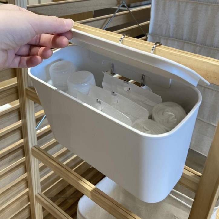 別売りのフックで吊るしたり、専用のフタを付けてホコリを防いだりと、使い方も自在。
