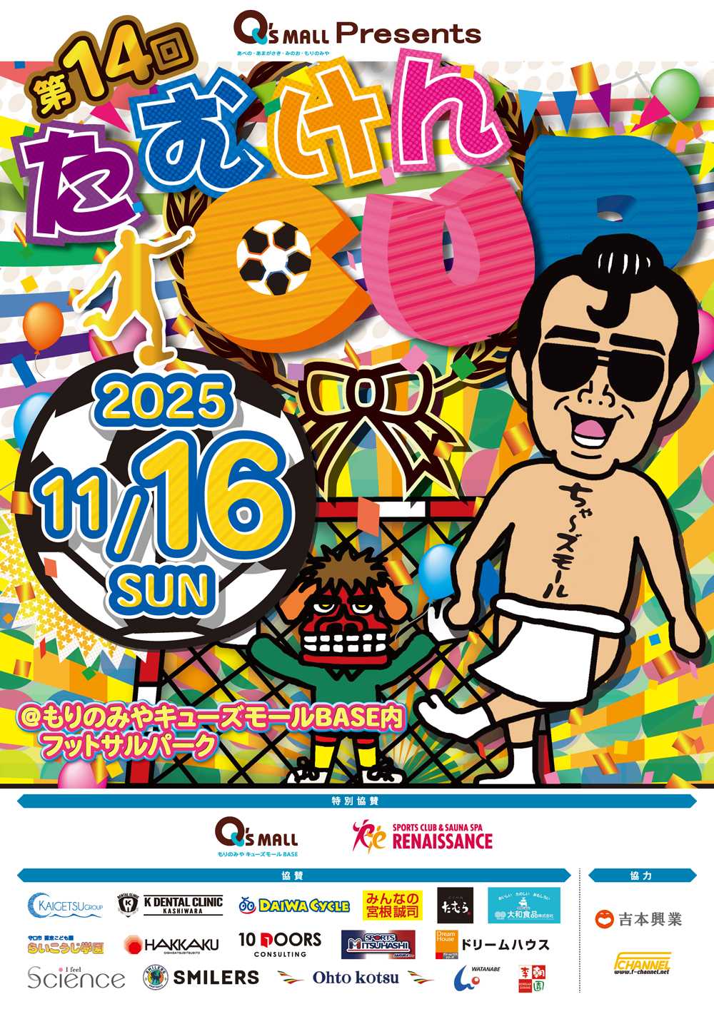 お笑い芸人たちと一緒にスポーツイベントを楽しもう!! キューズモールギフトカードなどが当たる“ちゃ~(抽)選会”も開催!!